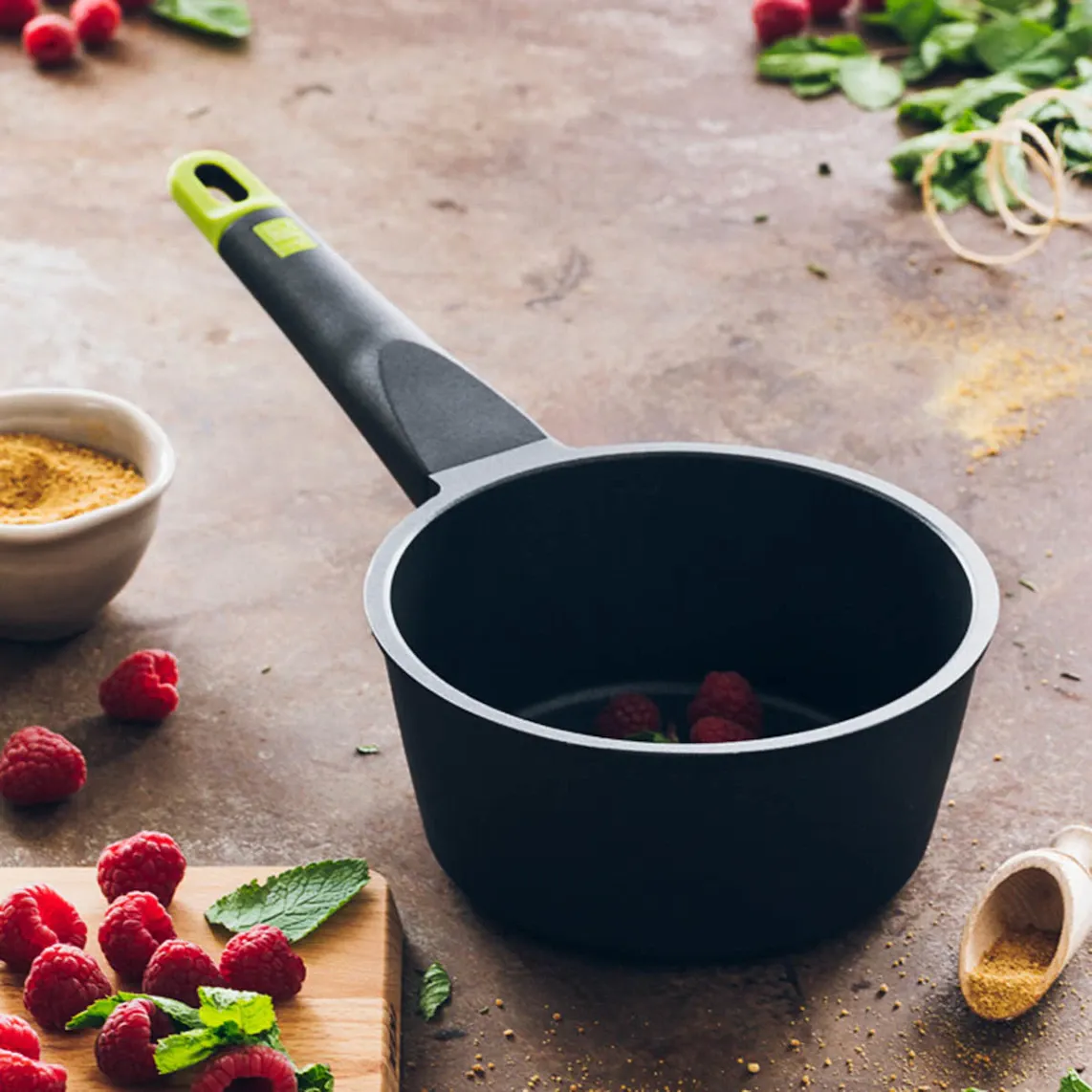 Кастрюля серии Foodie от Bra's изготовлена ​​из прочного литого алюминия с трехслойным антипригарным покрытием Teflon Innovations, не содержащим ПФОК.