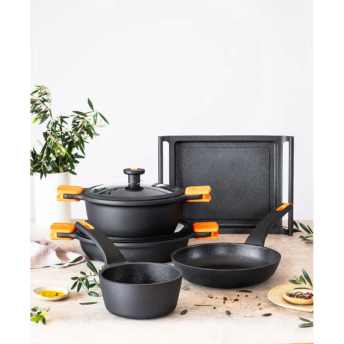 Полный кухонный гарнитур, состоящий из 5 предметов из серии Bra’s Efficient Pro, эксклюзивно для El Corte Inglés. Все детали изготовлены из недеформируемого литого алюминия, лучшего на сегодняшний день на рынке, обеспечивающего максимальную долговечность, устойчивость к царапинам и лучшую антиадгезивность. Обновленный дизайн, который обеспечит вам максимальную теплоотдачу и более эффективное использование энергии благодаря внутреннему антипригарному покрытию Premium Teflon Profile Plus, не содержащему ПФОК.