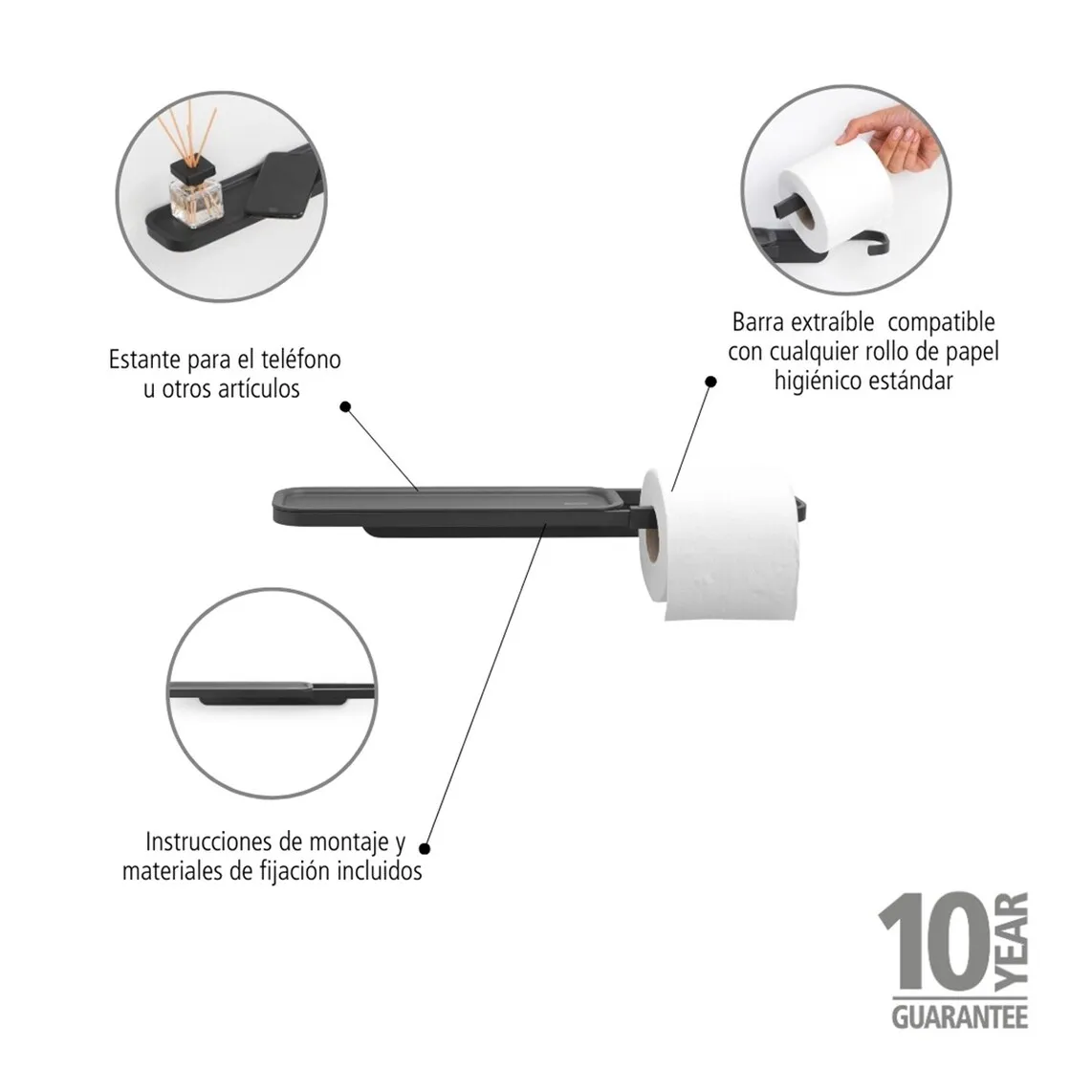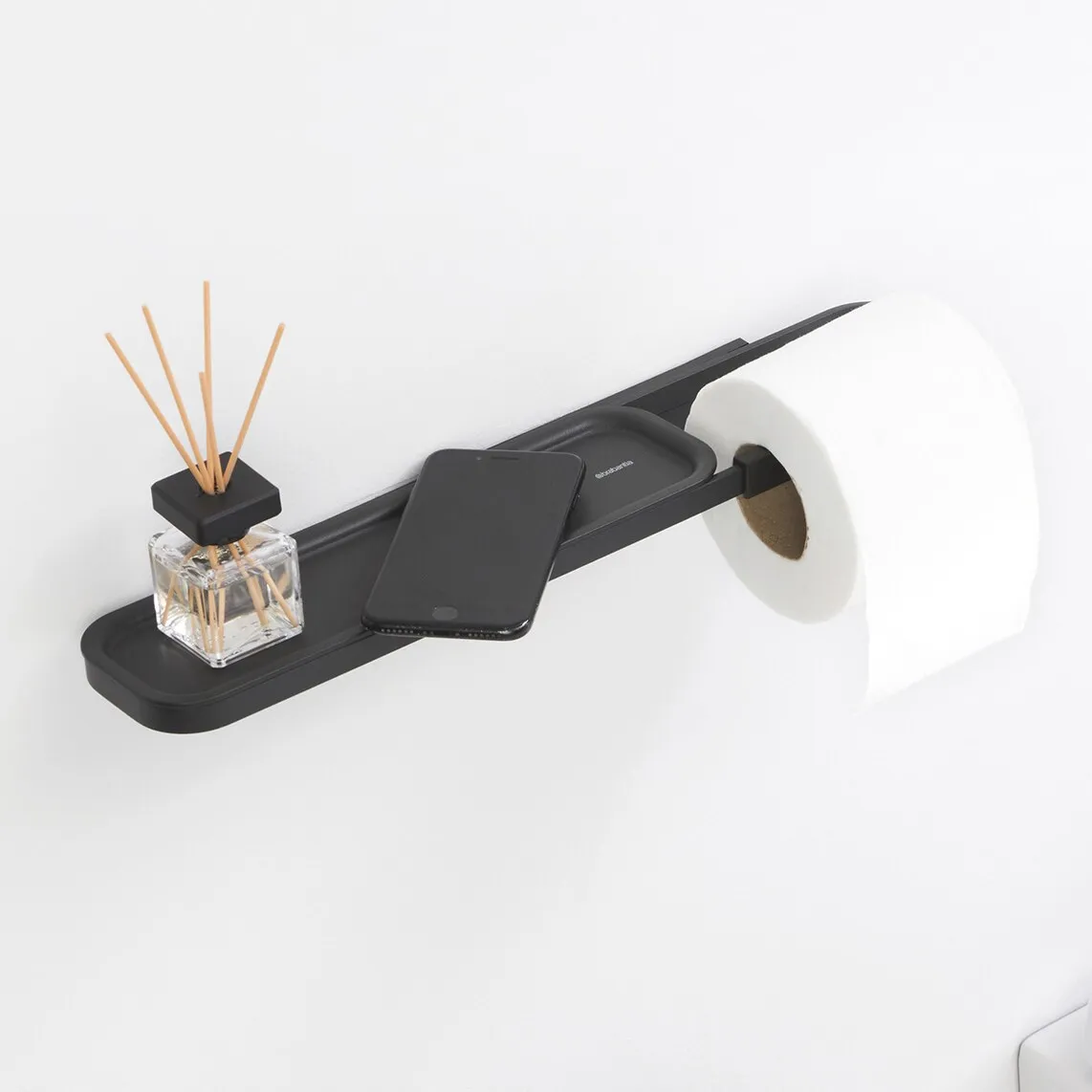 Держатель для туалетной бумаги с небольшой полочкой для других предметов.