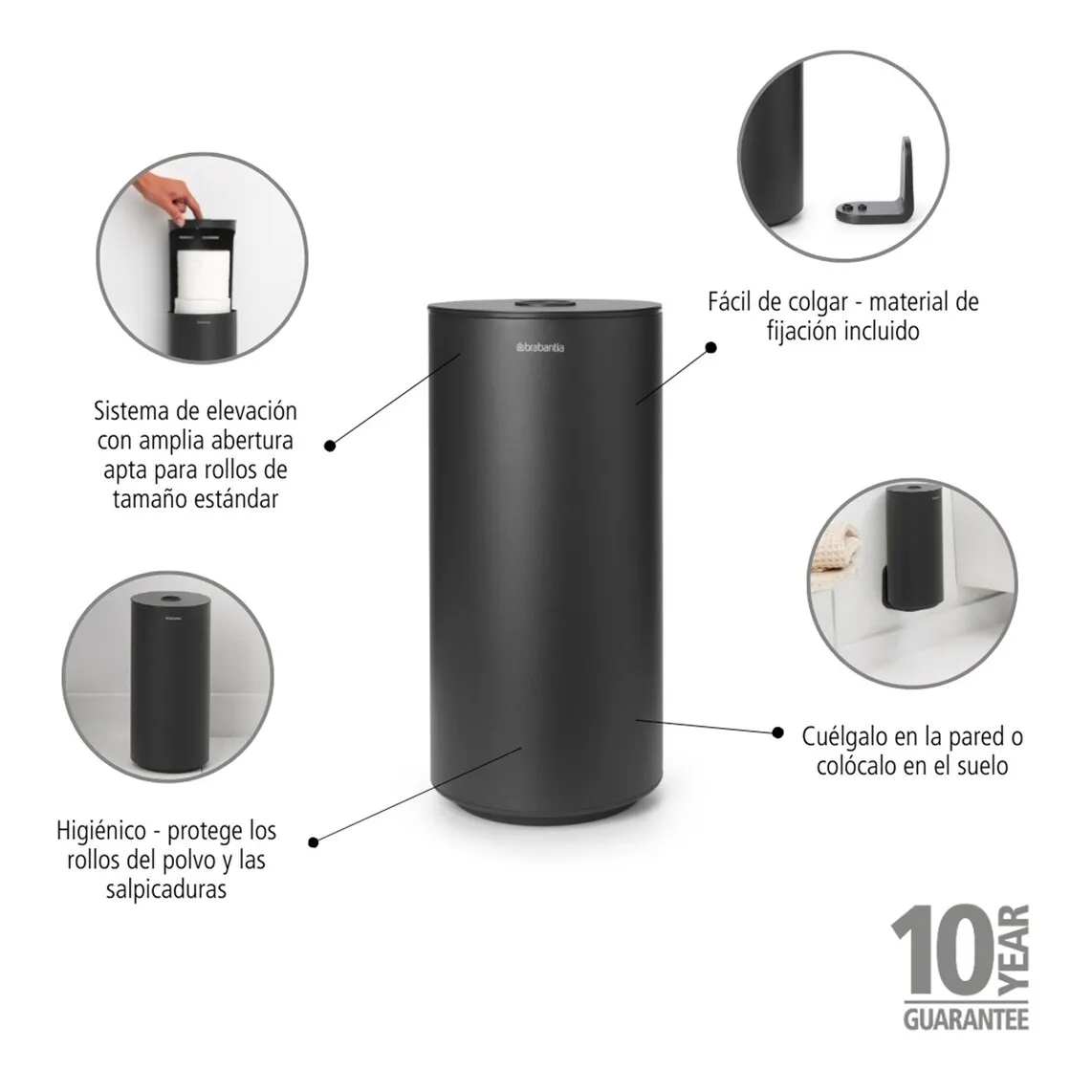 Минималистичный держатель запасного рулона, в котором достаточно места для хранения 2 рулонов бумаги. Закрытая конструкция защищает рулоны от пыли и брызг. Изготовлен из коррозионностойких материалов и имеет современное минеральное покрытие.