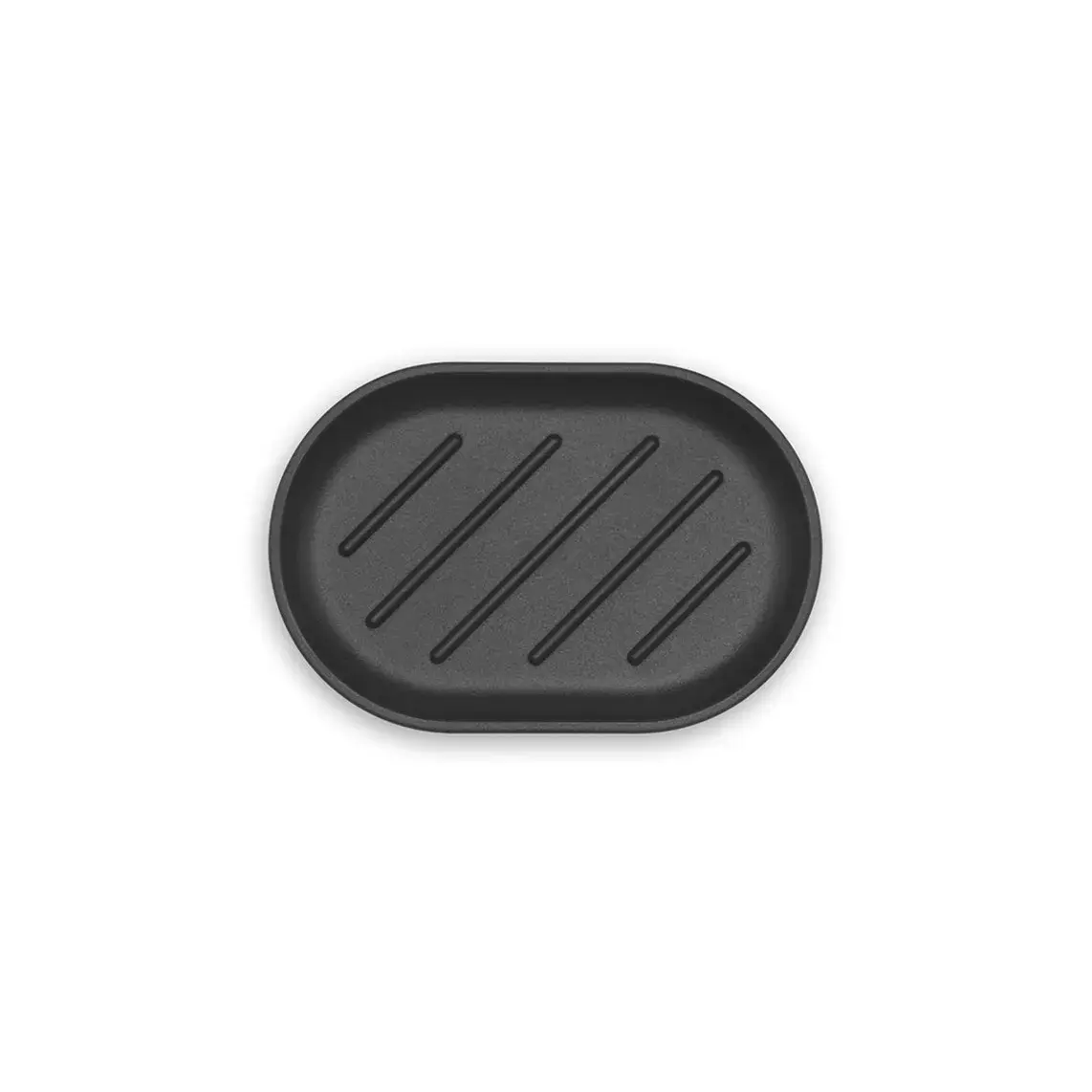 Настольная мыльница из фактурного металла с нескользящим основанием. Канавки сохраняют мыло сухим, а большой размер позволяет использовать его в виде целого куска.