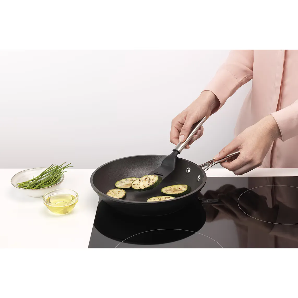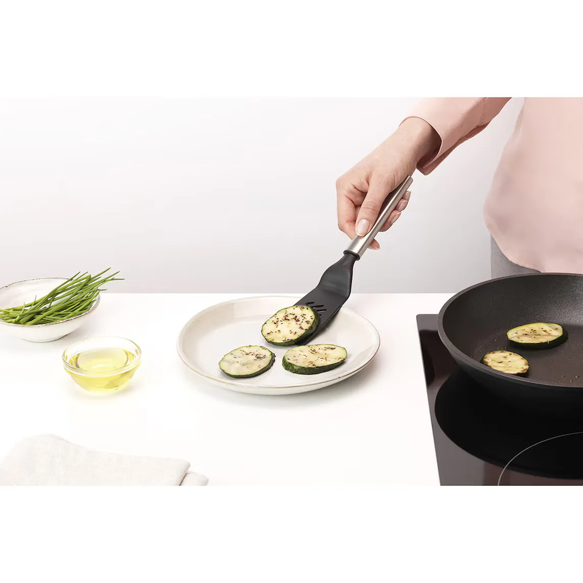 Маленькая лопаточка из серии Brabantia Profile идеально подходит для переворачивания продуктов в кастрюле. Благодаря качественным материалам он не царапает кастрюли и сковородки с антипригарным покрытием. Изготовлен из высококачественного термостойкого нейлона (макс. 220°) с ручкой из нержавеющей стали. Кроме того, ее очень легко мыть в посудомоечной машине.
