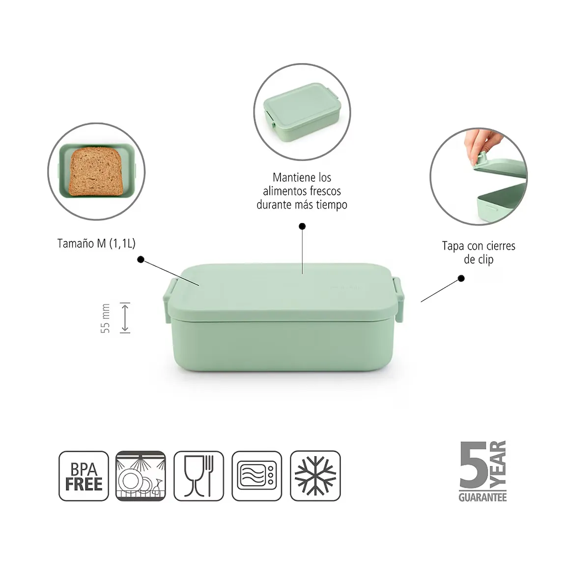 Герметик из коллекции Make & Take, идеально подходящий для хранения и сохранения продуктов питания в идеальном состоянии. Он изготовлен из пластика, не содержащего BPA, и материалов, пригодных для вторичной переработки. Его очень удобно хранить в сумке или рюкзаке, он закрывается на кнопку. Очень удобная герметичная упаковка, так как ее можно легко мыть в посудомоечной машине, помещать в микроволновую печь и морозильную камеру.