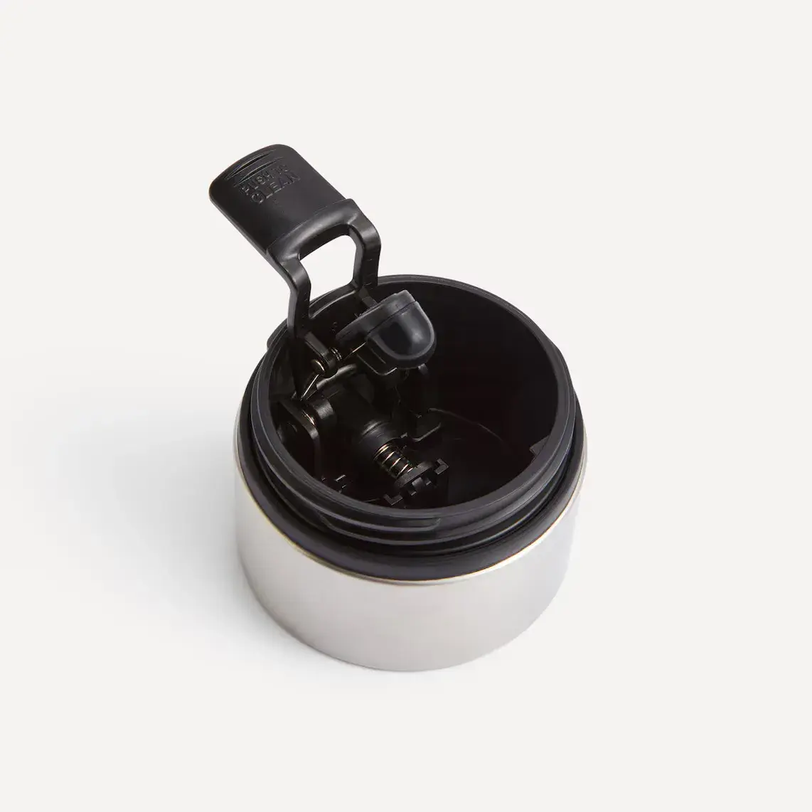Дорожный термос из нержавеющей стали с вакуумной изоляцией емкостью 360 мл сохранит напитки горячими или холодными в течение нескольких часов, а металлическая отделка не останется незамеченной.