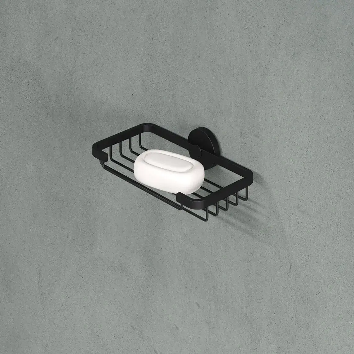Сетчатая мыльница из латуни и других сплавов металлов с электролитической антикоррозийной отделкой, защищающей аксессуар от воздействия влаги. Он крепится к стене шурупами.