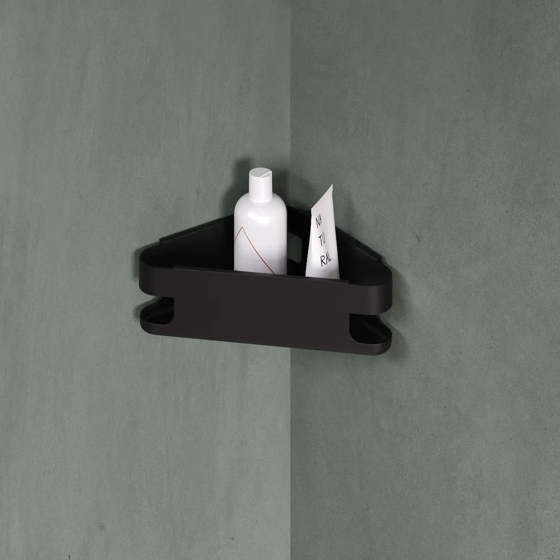 Угловая мыльница для душа с клеем Start Cosmic, матовый черный