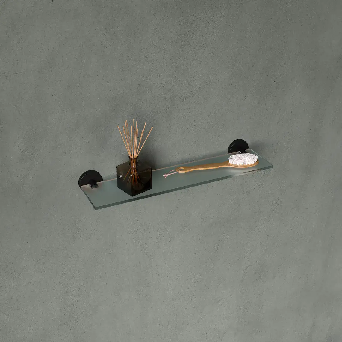 Полка для ванной комнаты из латуни и других металлических сплавов с электролитическим антикоррозийным покрытием, защищающим аксессуар от воздействия влаги. Он крепится к стене шурупами.