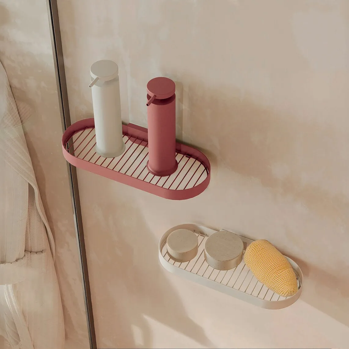 Мыльница для душа с минималистичным и современным дизайном, изготовленная из замака. Имеет двойную систему установки: с помощью шурупов к стене или с помощью клейкой ленты. Крепления скрыты.