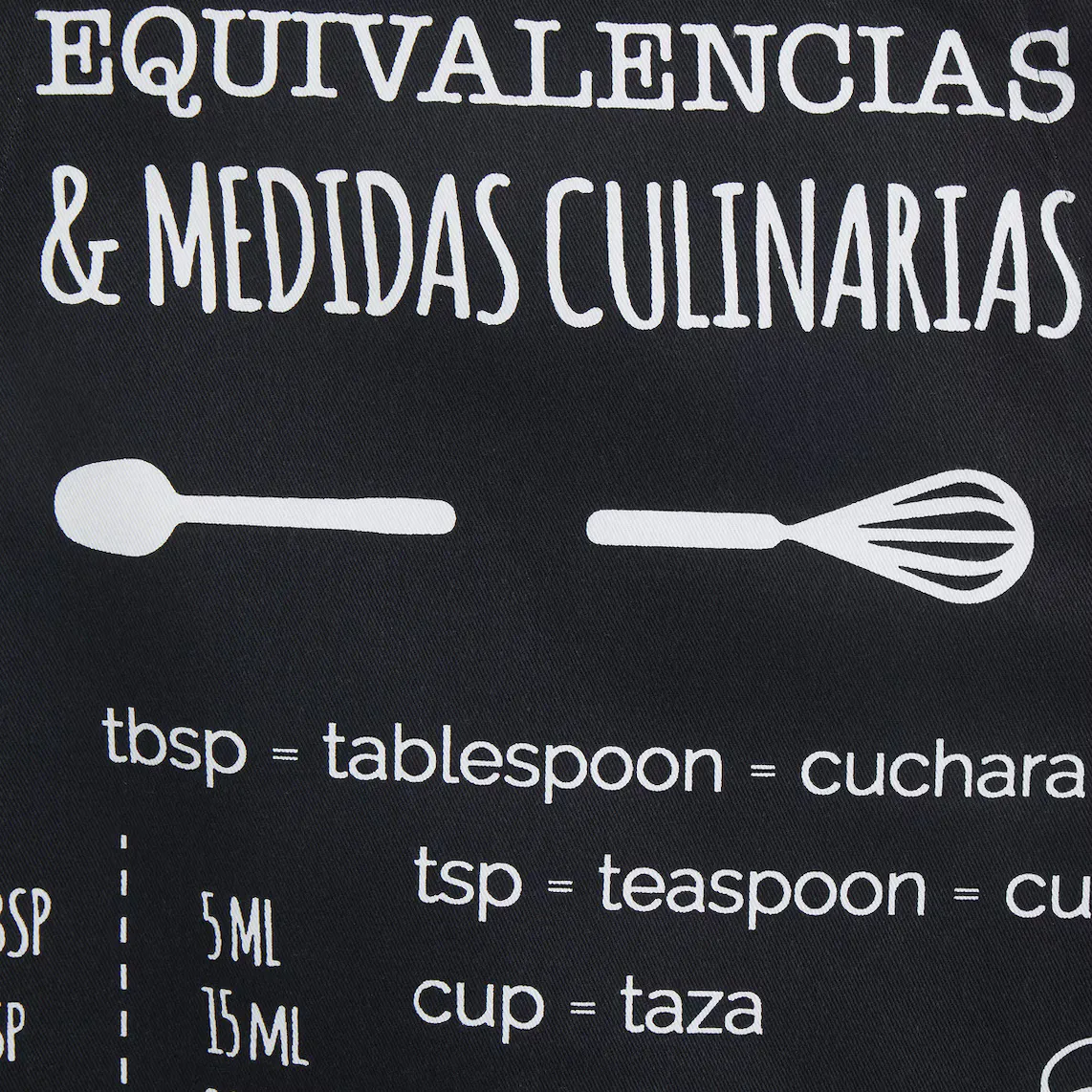 Фартук с эскизом кухонных размеров и эквивалентов.