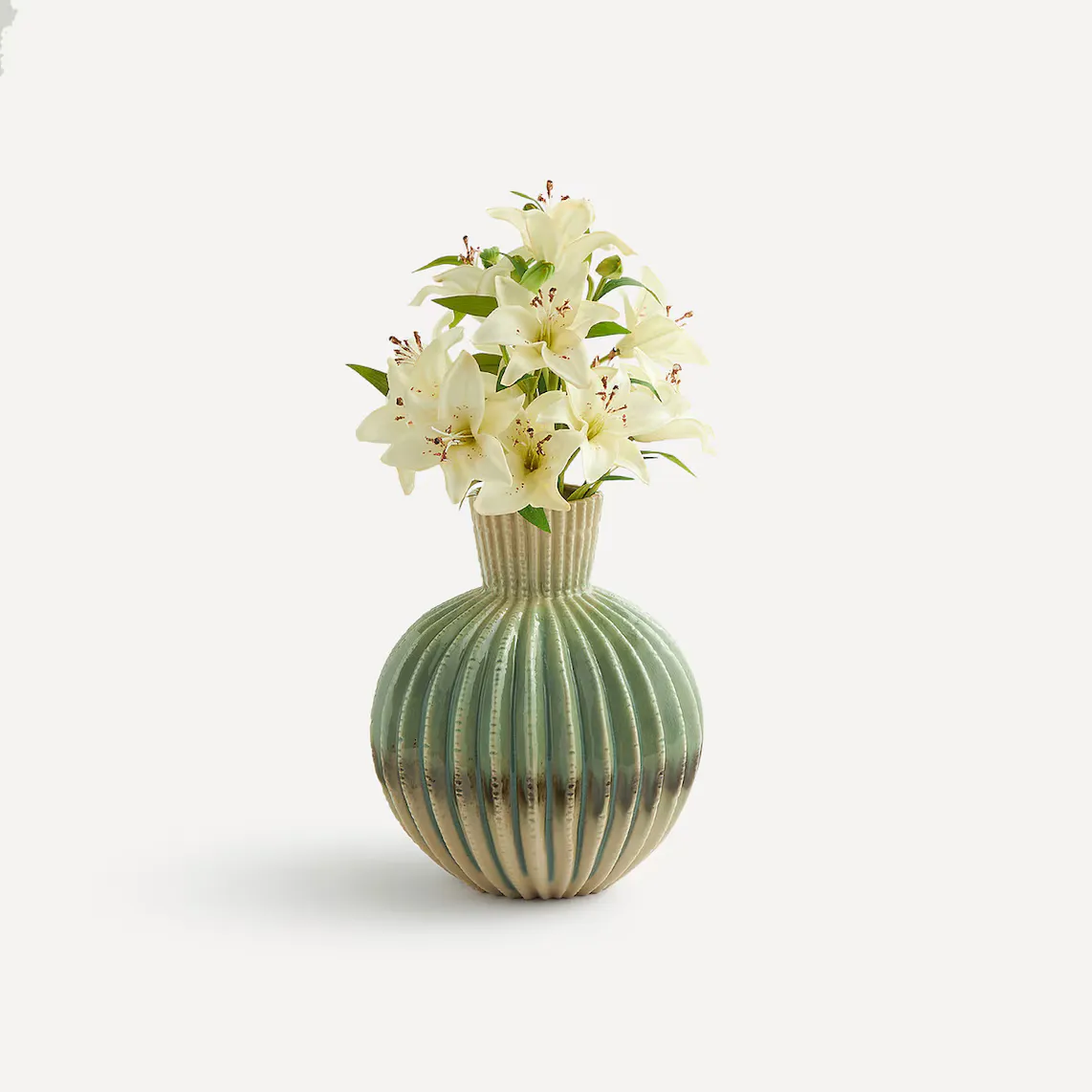 Ваза из фарфора, вылеплена вручную и расписана элегантным зеленым градиентом. Его оригинальный дизайн, вдохновленный формами и движениями медузы, делает его идеальным декоративным элементом, который придаст морской оттенок любому уголку дома.