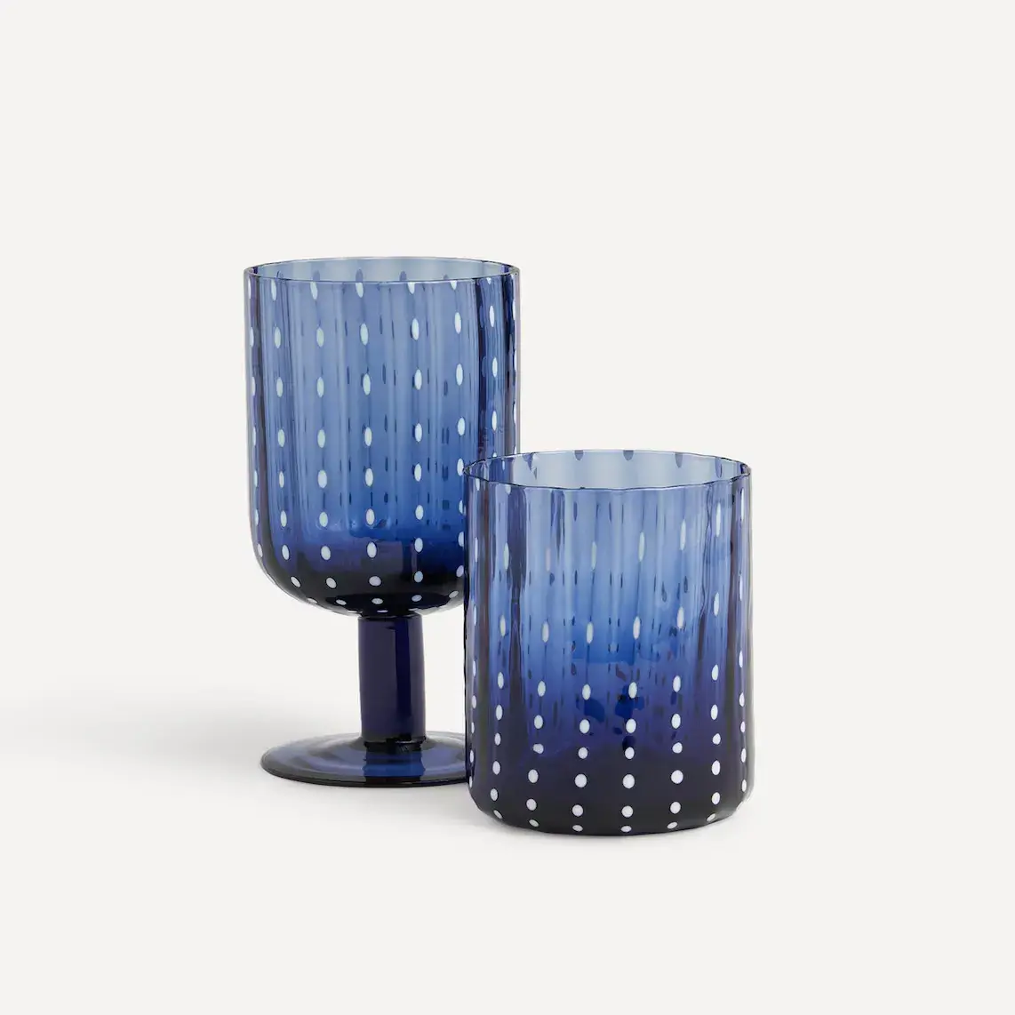 Стеклянный стакан для воды из серии «Самара», емкостью 30 кл, украшенный белым горошком. Он доступен в нескольких цветах, поэтому вы можете выбрать тот, который лучше всего украсит ваш стол.