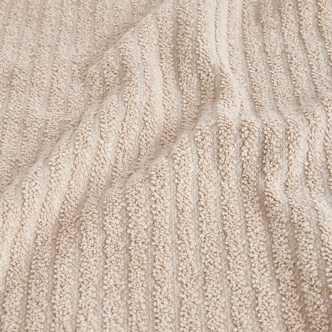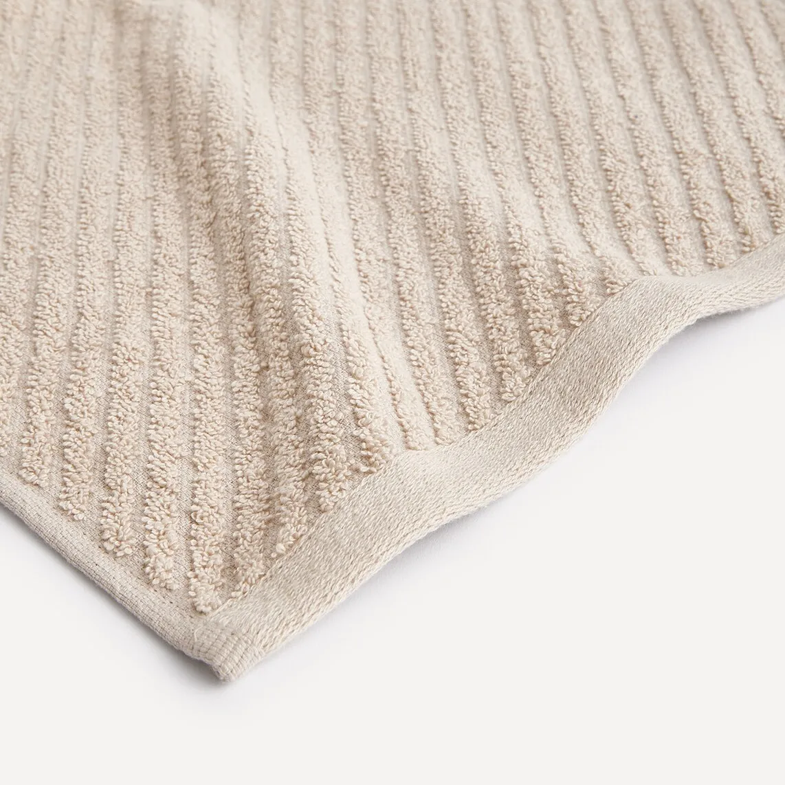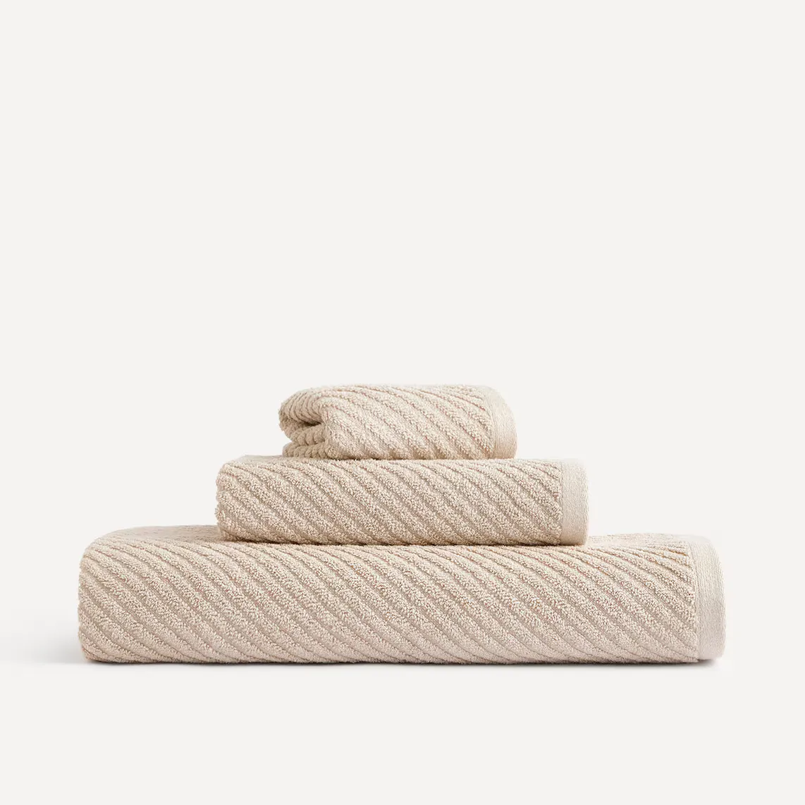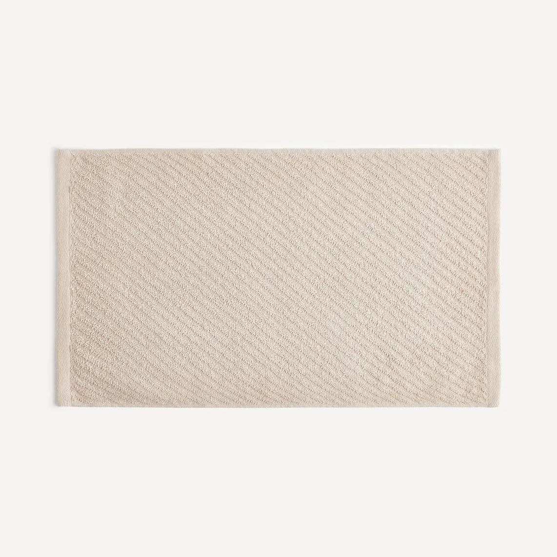 Банное полотенце с жаккардовым геометрическим узором и соответствующей отделкой, доступно в различных оттенках.