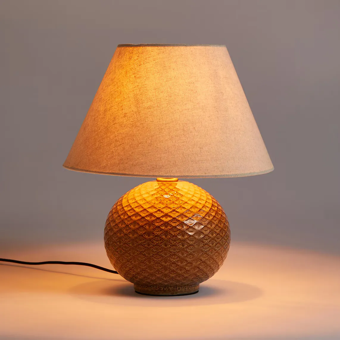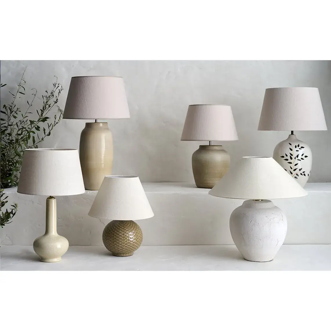 Вспомогательная настольная лампа с одной лампой, классический стиль, выполненная из керамики, с цилиндрическим текстильным абажуром цвета экрю. Идеально подходит для гостиных и спален. Требуется лампа с толстым цоколем E27 и максимальной мощностью 60 Вт (лампа в комплект не входит).