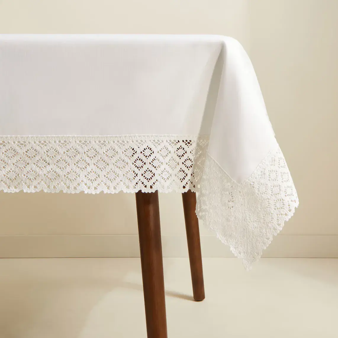 Скатерть с простым рисунком, отделанная ажурной оборкой.