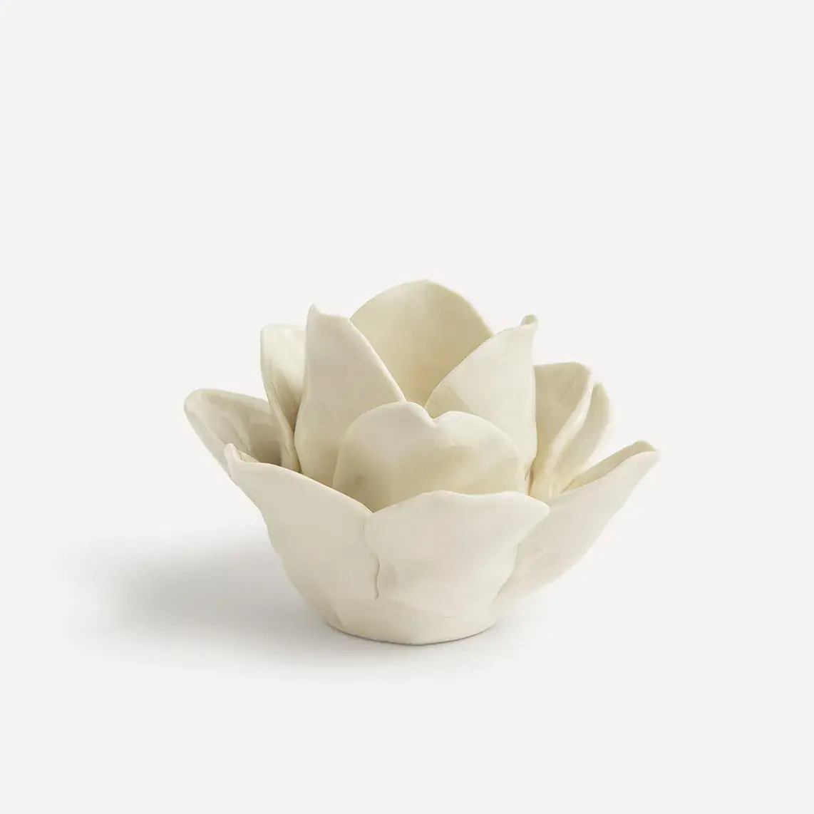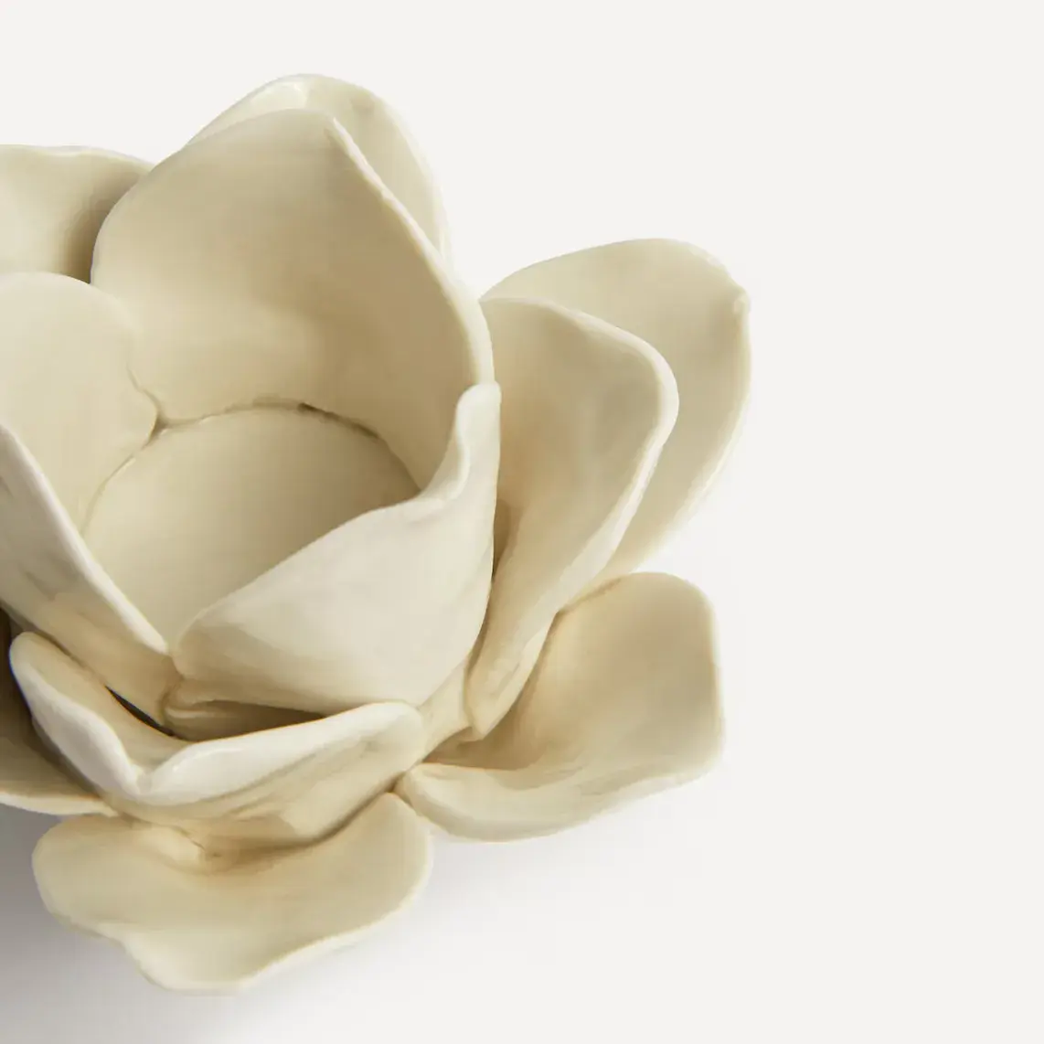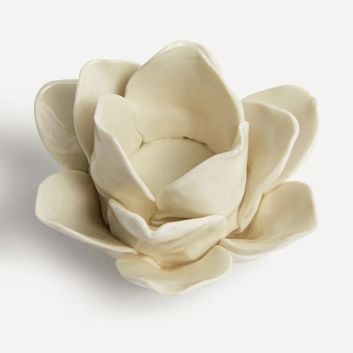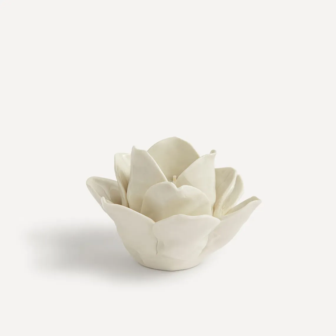 Подсвечник в форме водяного цветка изготовлен из отполированной керамики ручной работы. Простое изделие, которое добавит нотку света и свежести в любую обстановку.