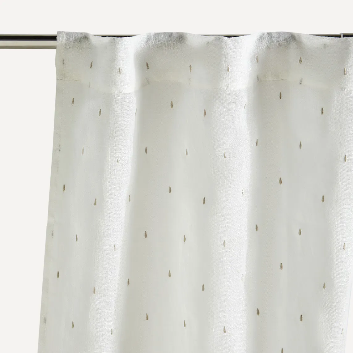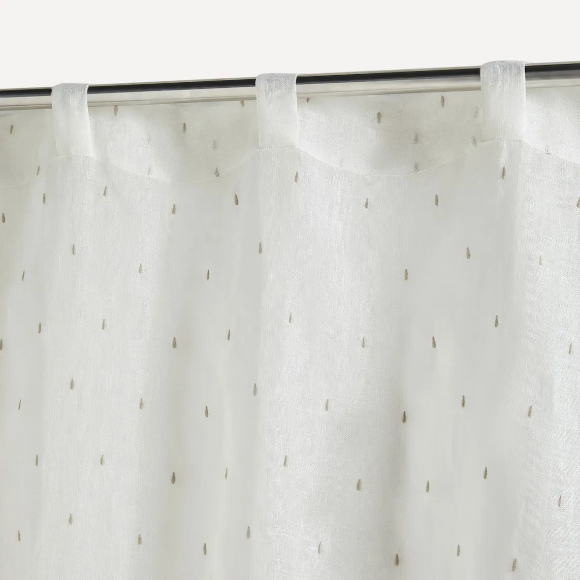 Прозрачная занавеска на петлях с вышитым узором-капелькой.