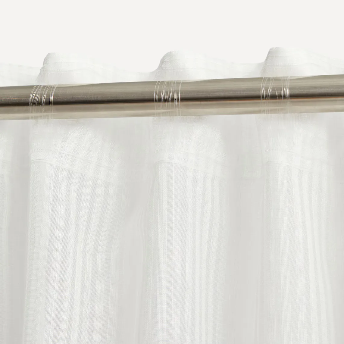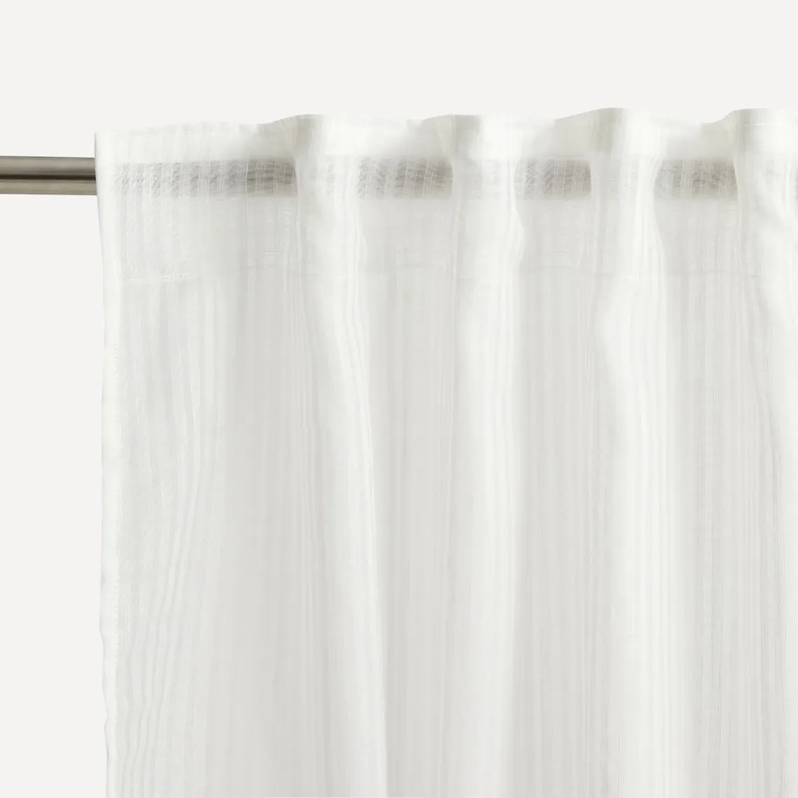 Прозрачная занавеска с полосатым рисунком в белых тонах из 100% переработанного полиэстера.