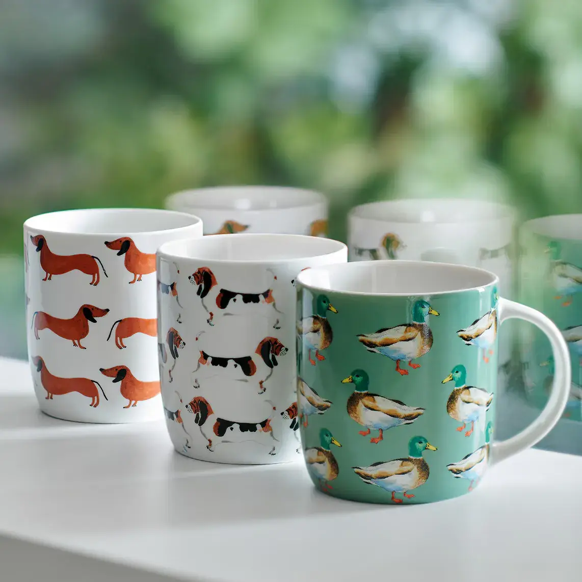 Чашка в виде кружки, украшенная забавными собачками-колбасами, которые придадут оригинальный вид вашим завтракам и послеобеденным блюдам. Кроме того, он изготовлен из костяного фарфора, прочного и элегантного фарфора, который можно без проблем помещать в микроволновую печь и посудомоечную машину.
