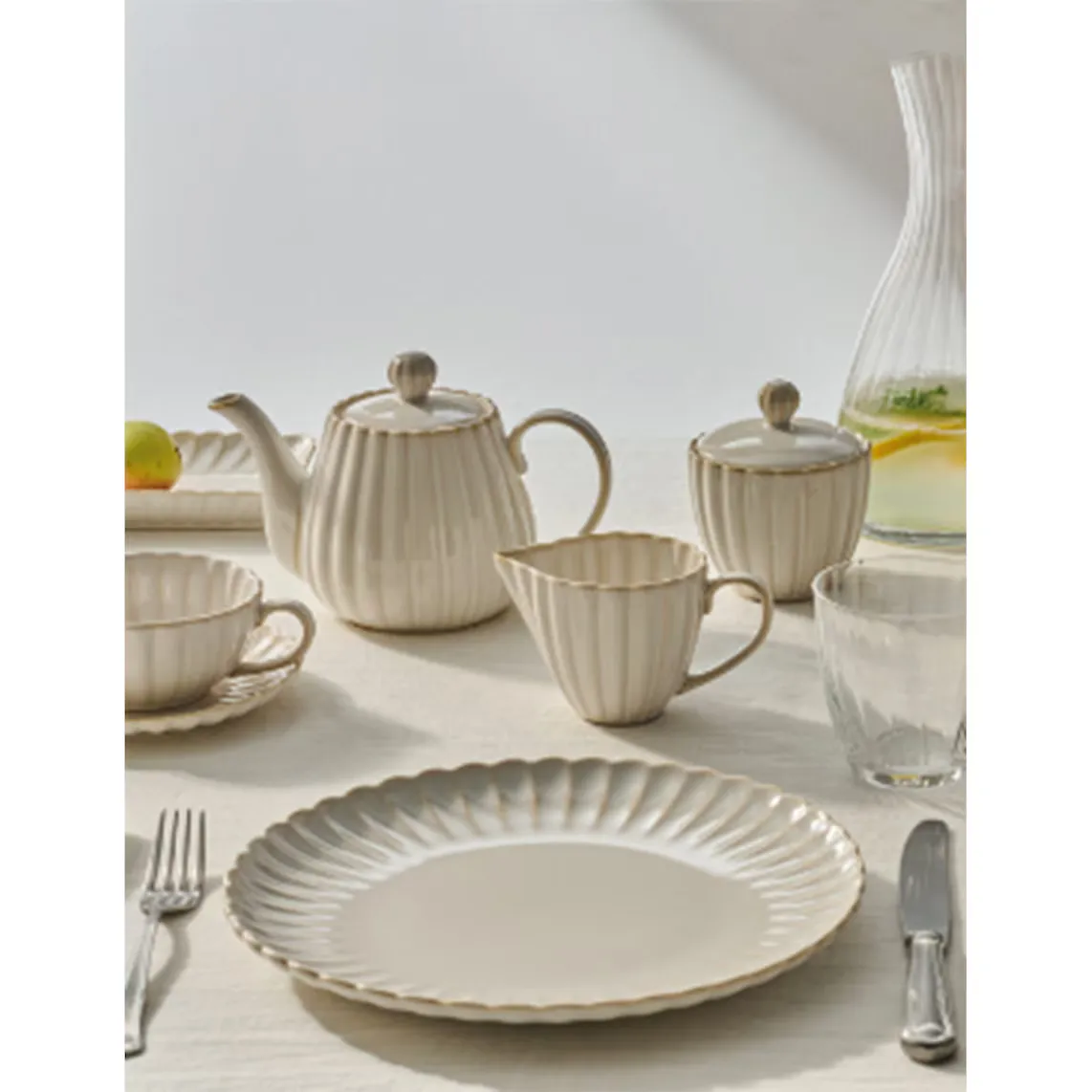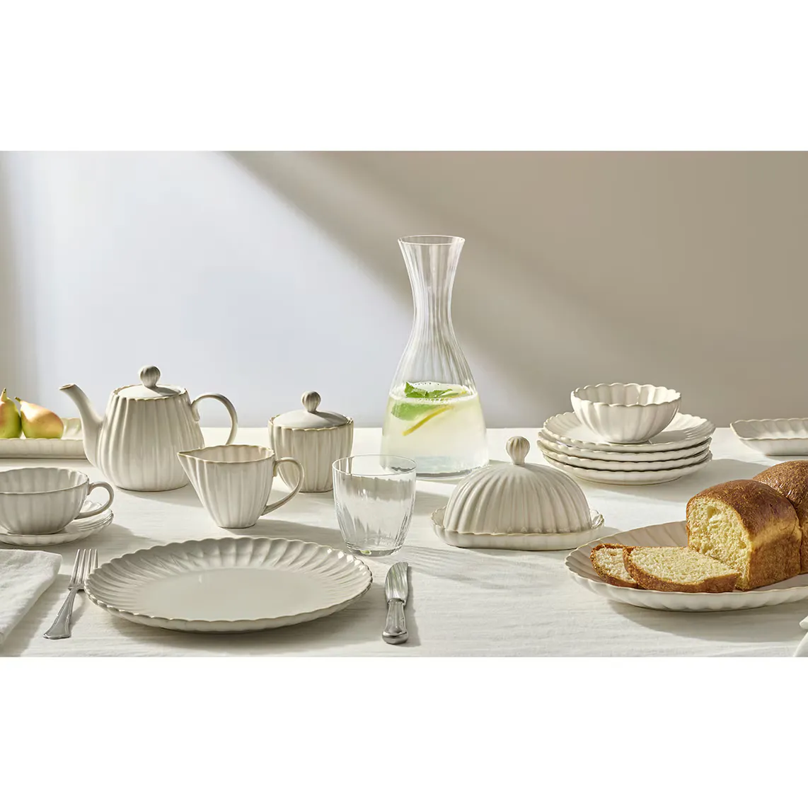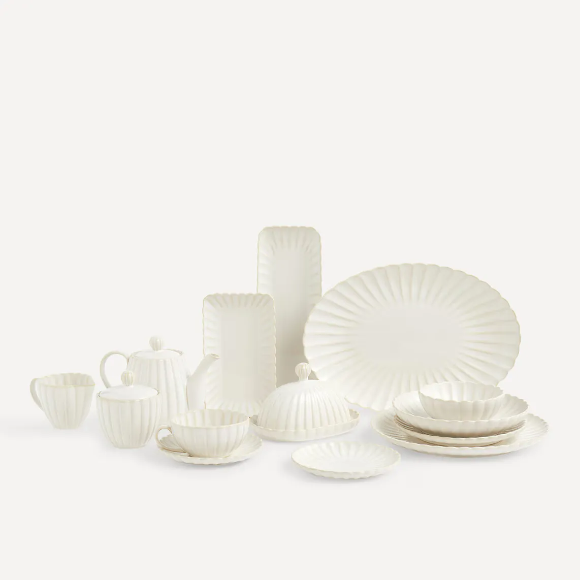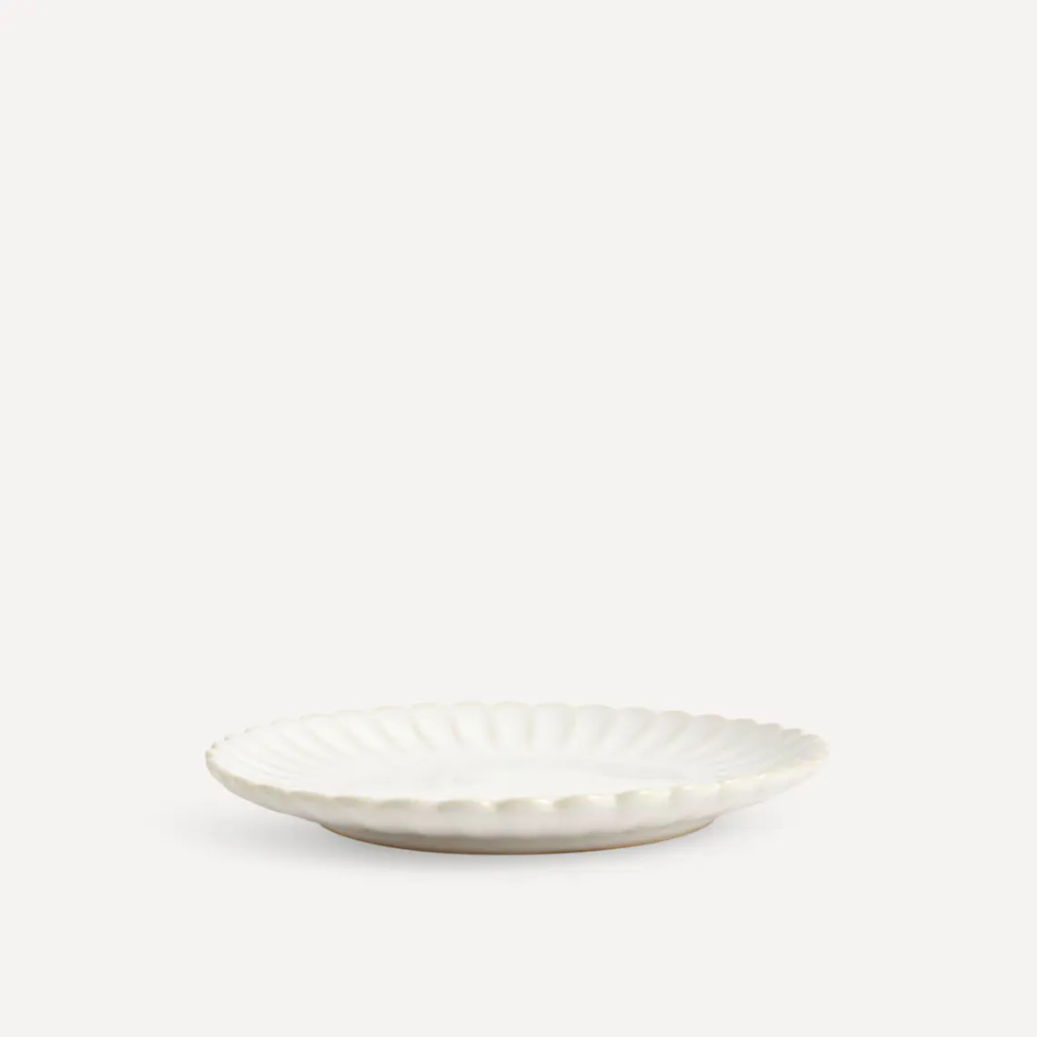 Десертная тарелка из серии Dalia классического и вневременного дизайна белого цвета с рельефным краем, напоминающим лепестки цветов.