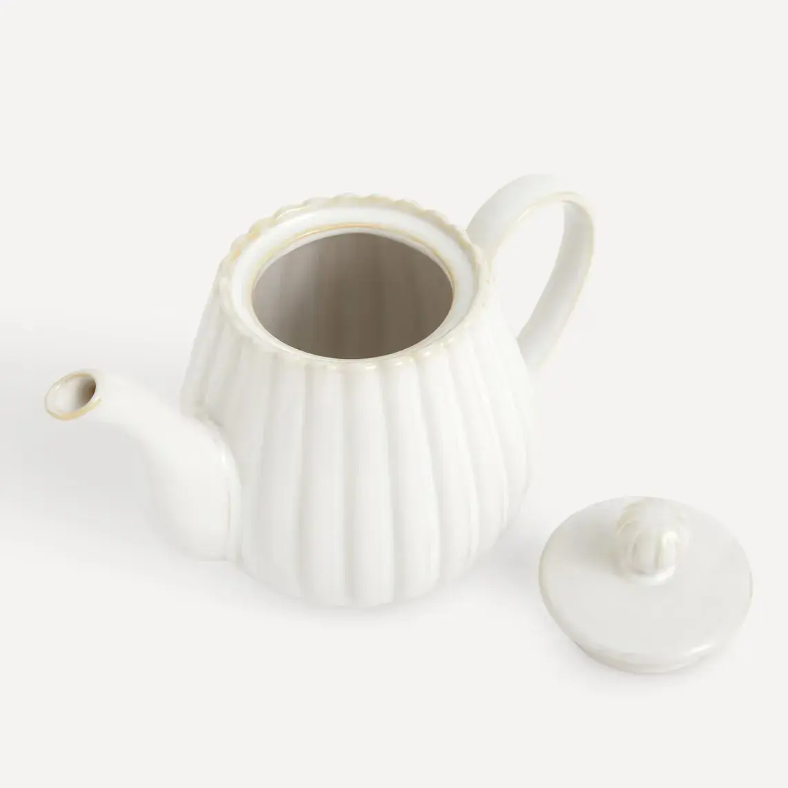 Чайник из серии Dalia, классический и вневременной дизайн в белом цвете и рельефных формах. У него есть крышка и ручка, поэтому вам будет удобно подавать чай.