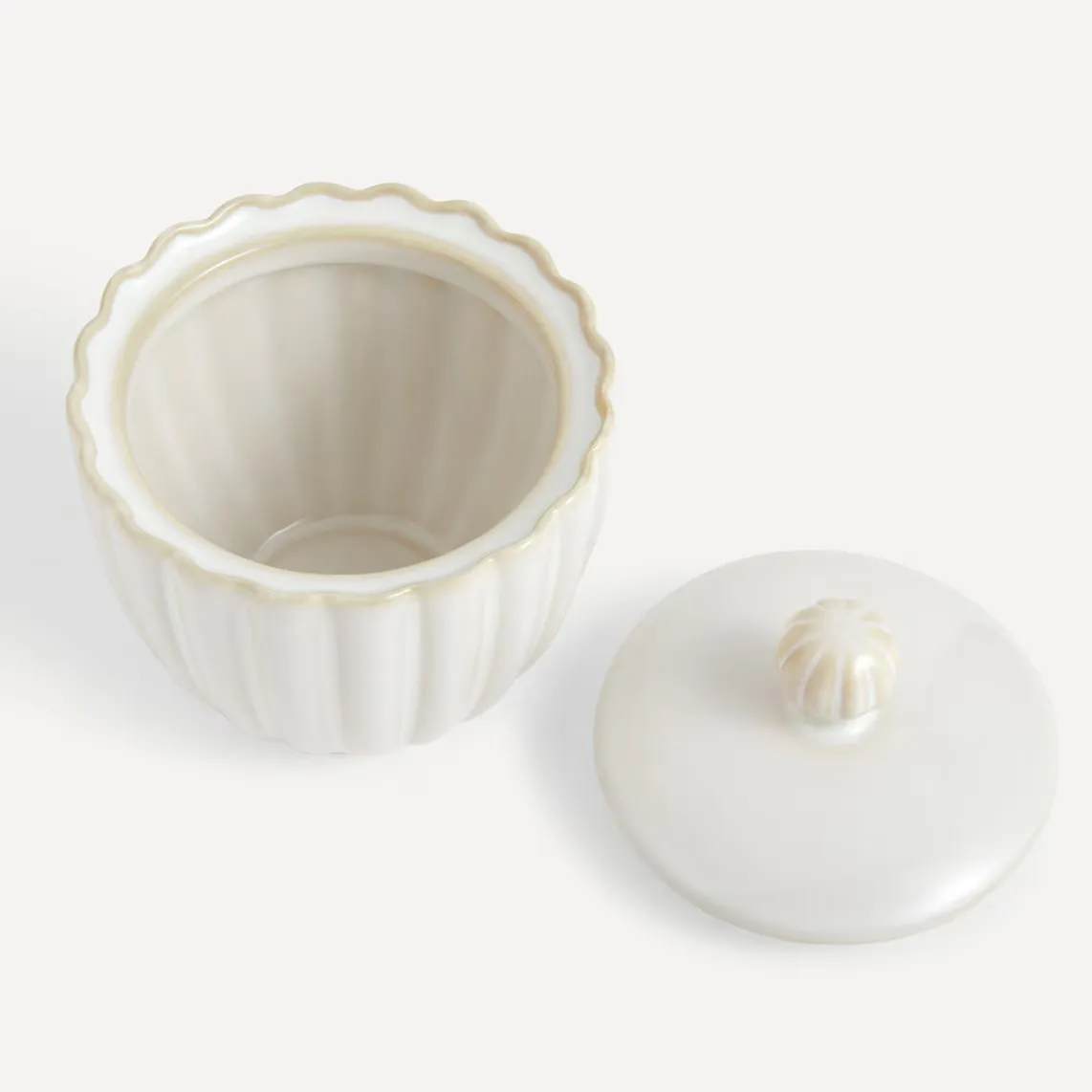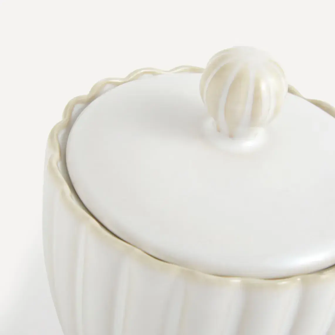 Сахарница с крышкой из серии Dalia, классический и вневременной дизайн в белом цвете и рельефных формах.
