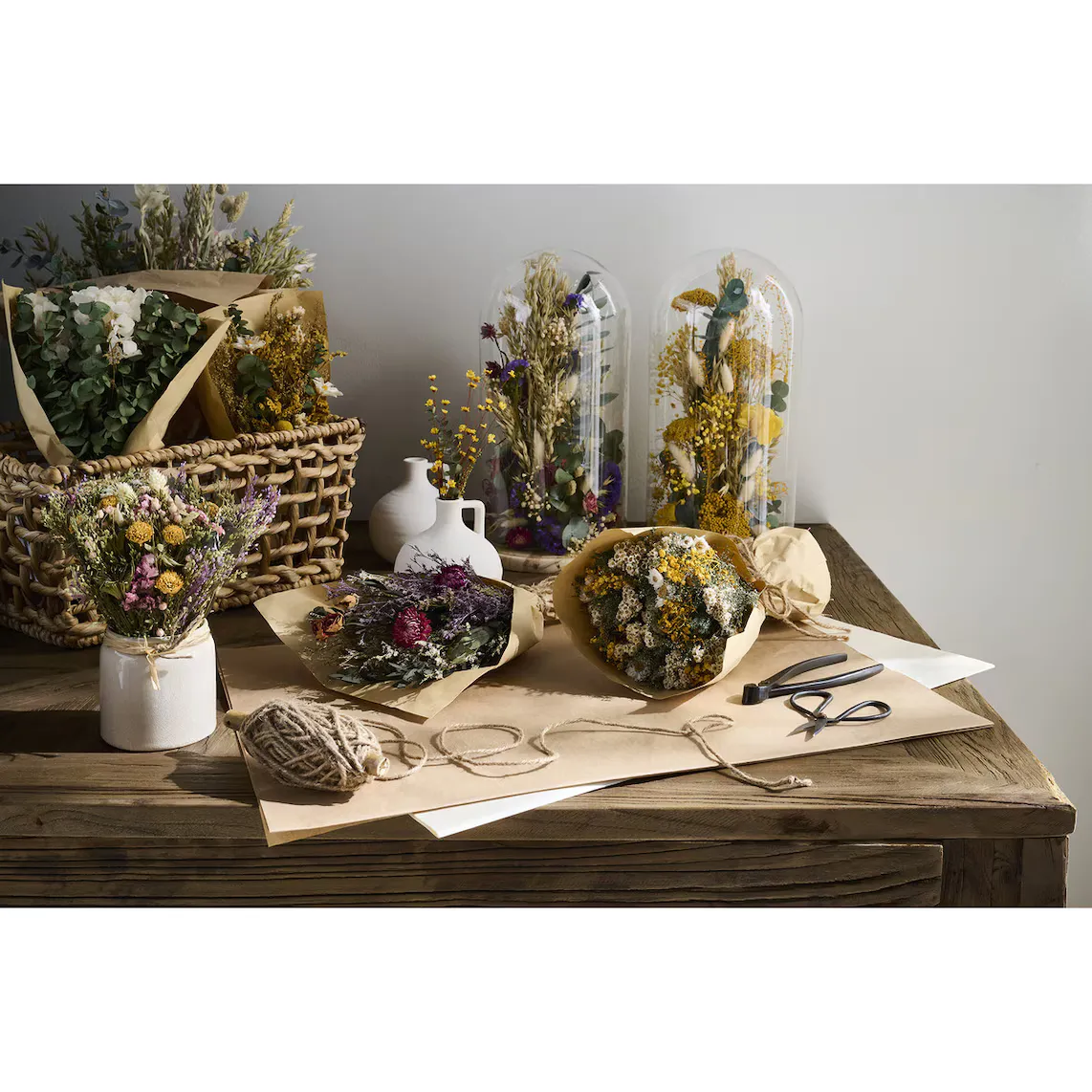 Букет из стабилизированных сухоцветов, техника, которая долгое время сохраняет естественный, свежий и яркий вид. В его состав входят цветы эвкалипта и гортензии — сочетание, которое идеально подойдет для вашего украшения.