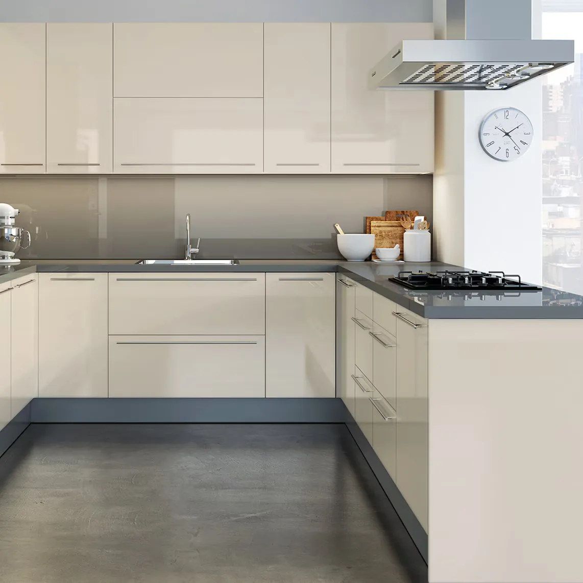 Современные и простые линии, эти настенные часы в Берлине напоминают циферблаты наручных часов и включают в себя, помимо времени, термометр и гигрометр для отображения температуры и влажности.