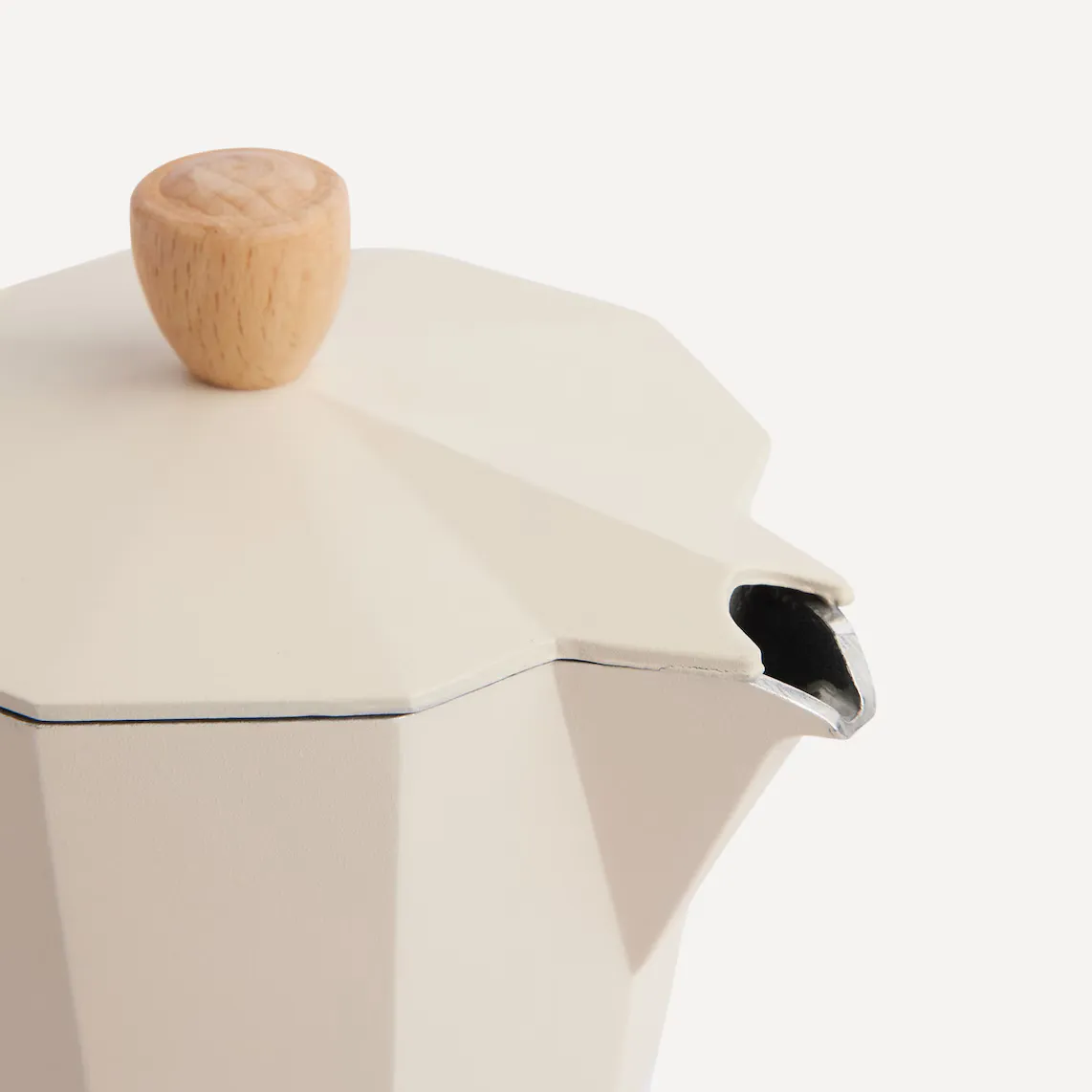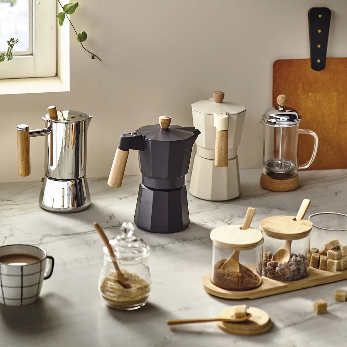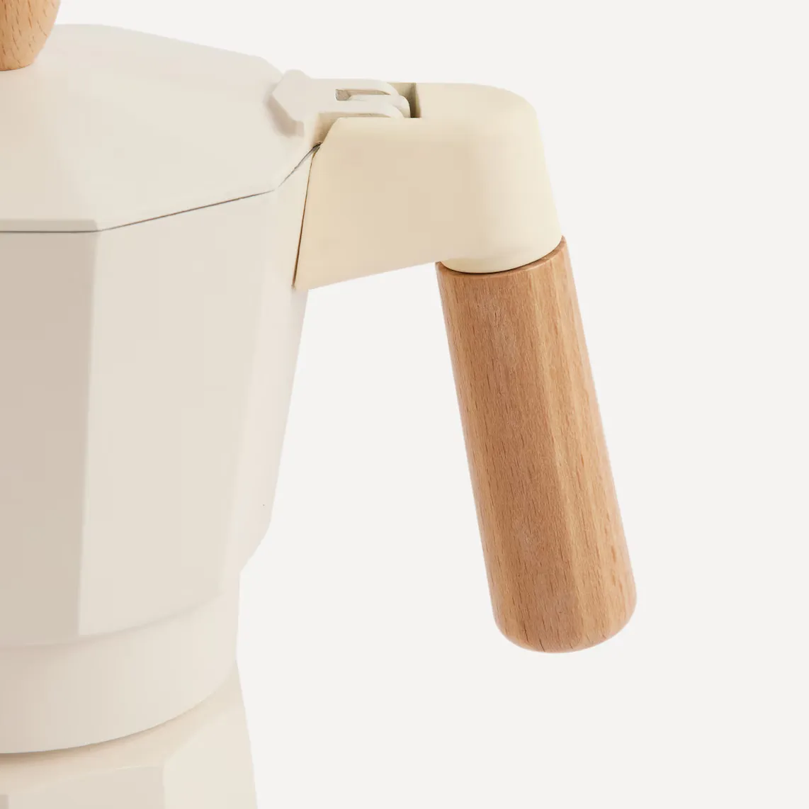Итальянская кофеварка изготовлена ​​из алюминия и имеет оригинальный дизайн, отличающийся элегантной деревянной ручкой. Идеальная вещь для любителей традиционного кофе и современного стиля.