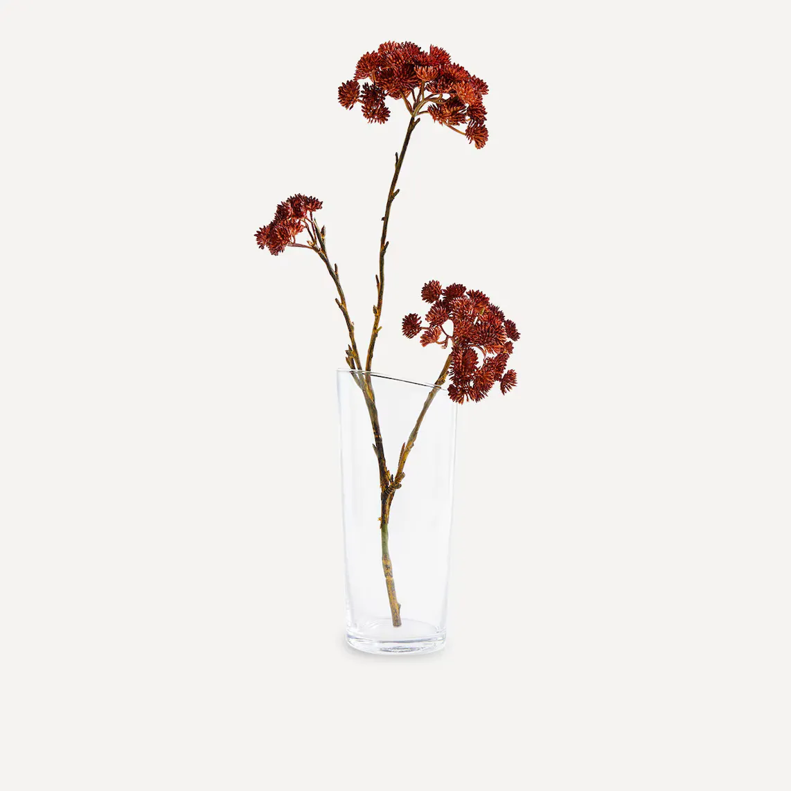 Ваза из прозрачного дутого стекла с широким горлышком. Это ручная работа, поэтому каждая ваза уникальна.