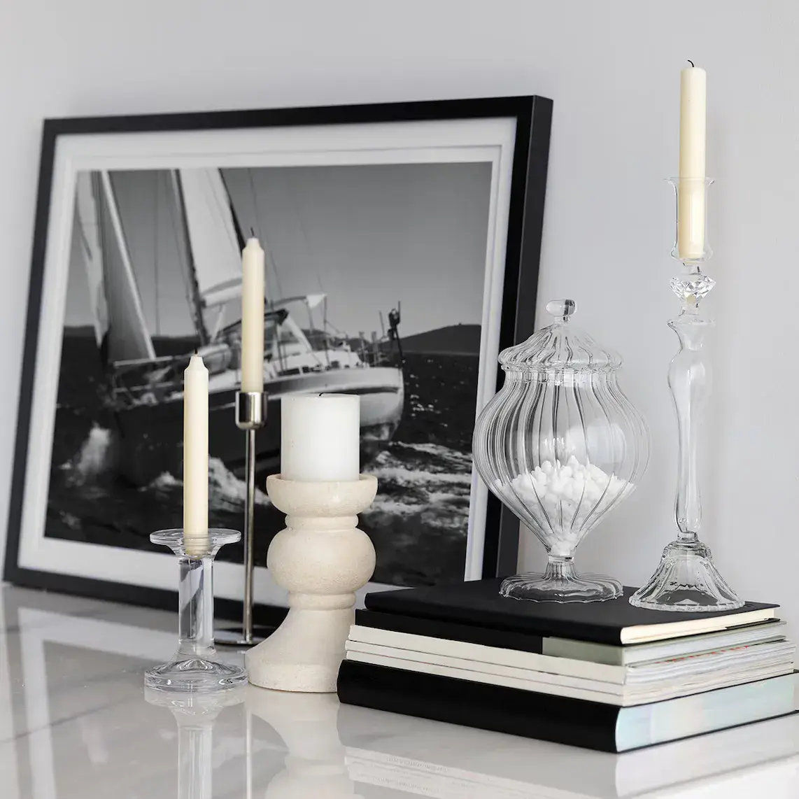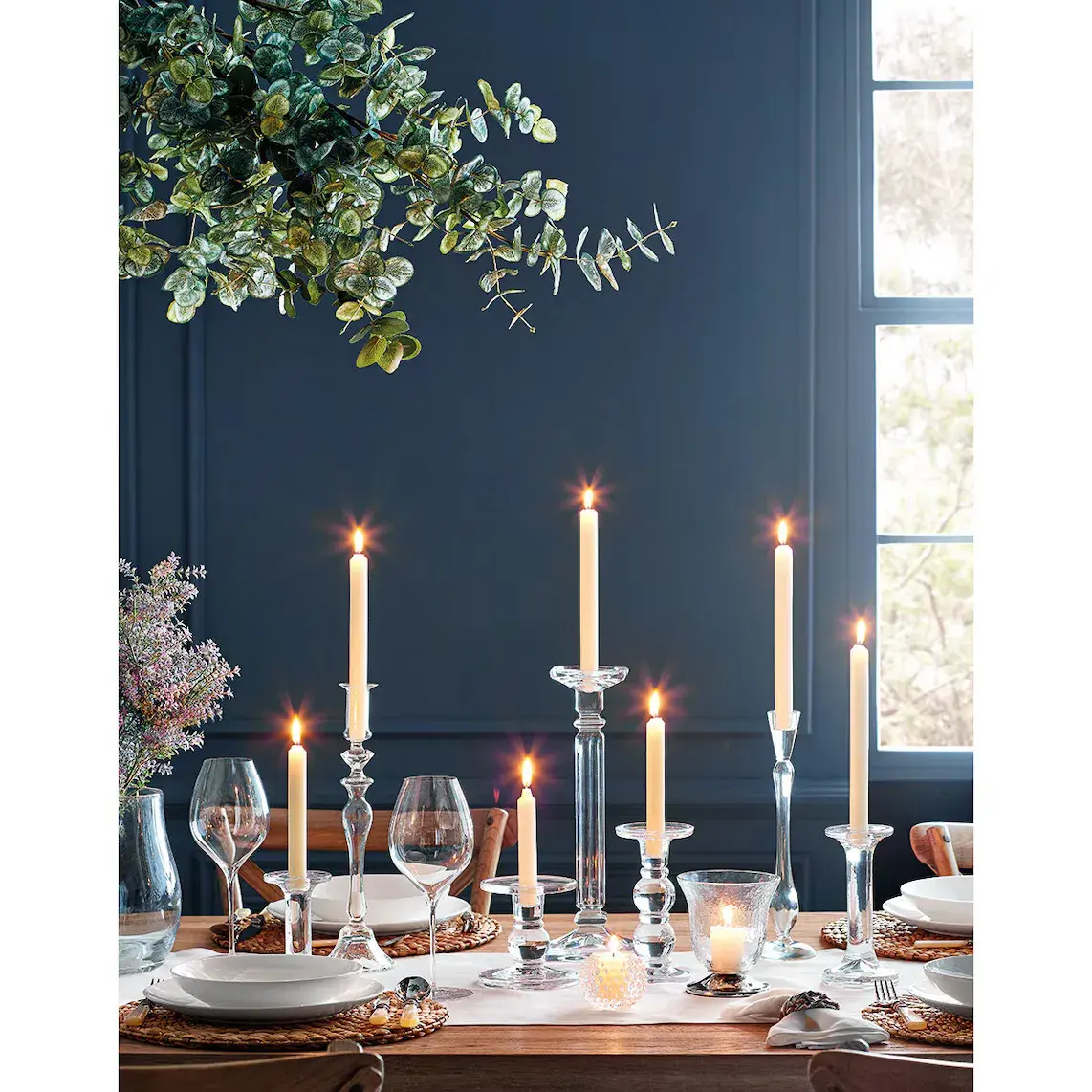 Простой, яркий и вневременной, этот стеклянный канделябр очень легко разместить на любом столе или в комнате, а также вы можете выбрать цвет свечей по своему вкусу.