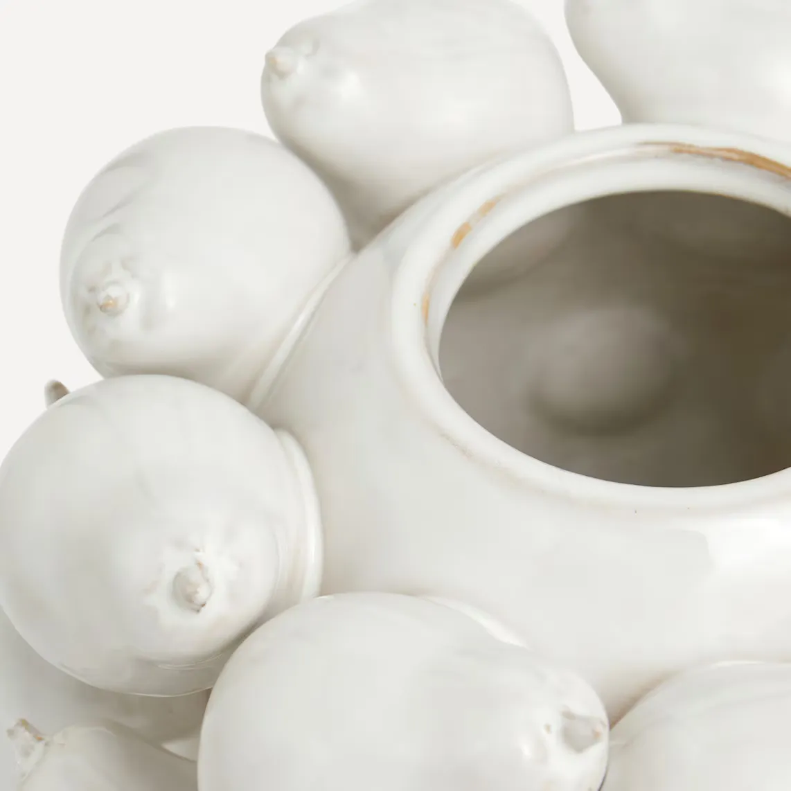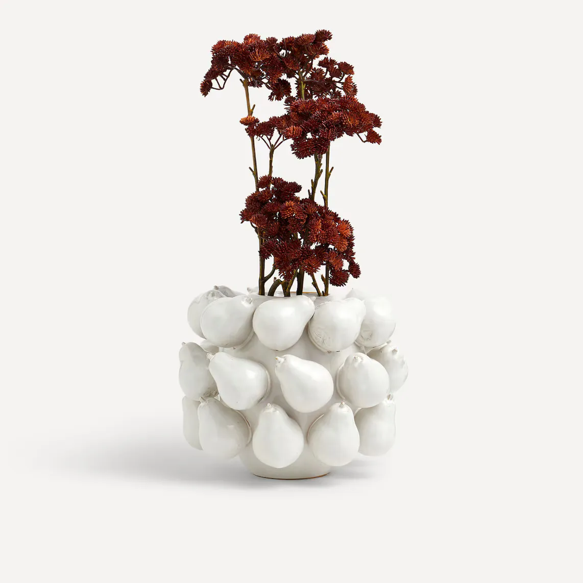 Декоративная ваза из фарфора, украшенная фигурками груш. Очень оригинальный декоративный элемент для размещения цветов или использования в качестве центрального элемента.