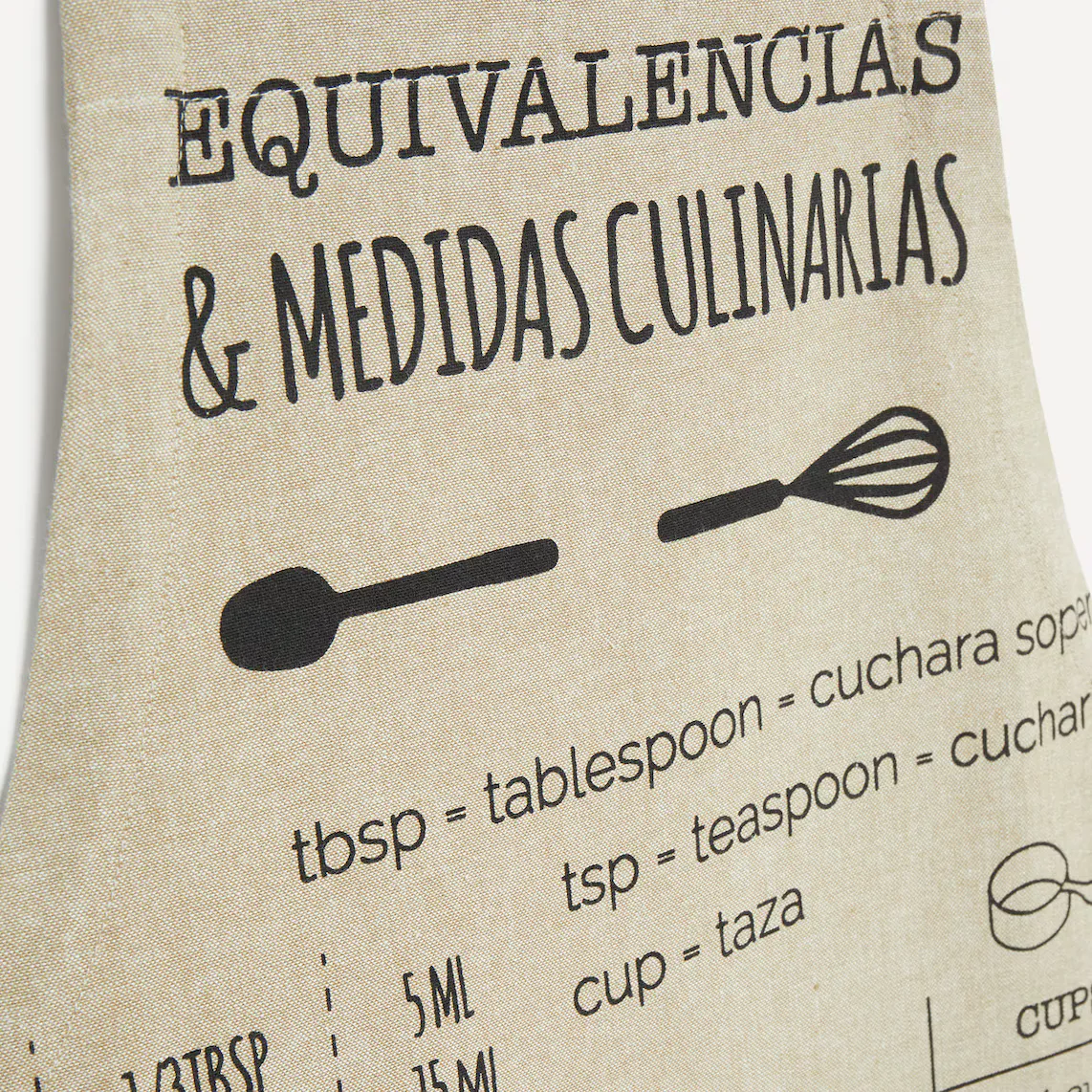 Фартук с эскизом кухонных размеров и эквивалентов.