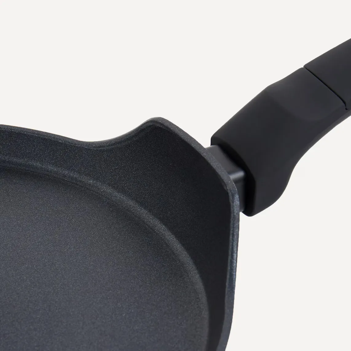 Готовьте блины с помощью этой блинницы Zircón. Он изготовлен из кованого алюминия и имеет нижнюю часть диффузора Full Induction, то есть цельный стальной диск, который позволяет легче и быстрее активировать индукционные плиты, обеспечивая идеальное распределение тепла и максимальную энергоэффективность.