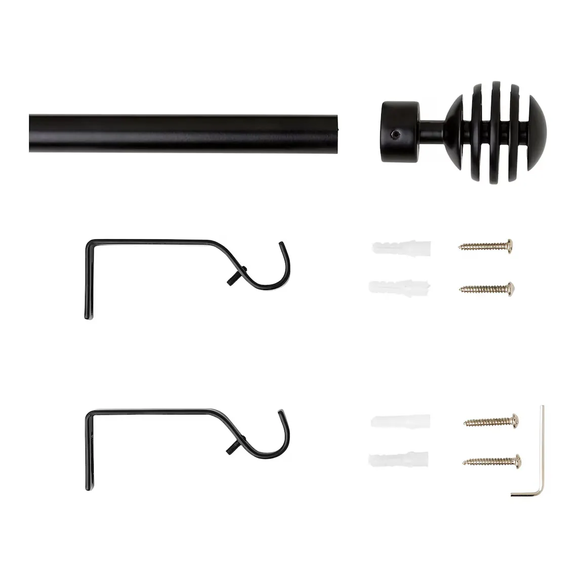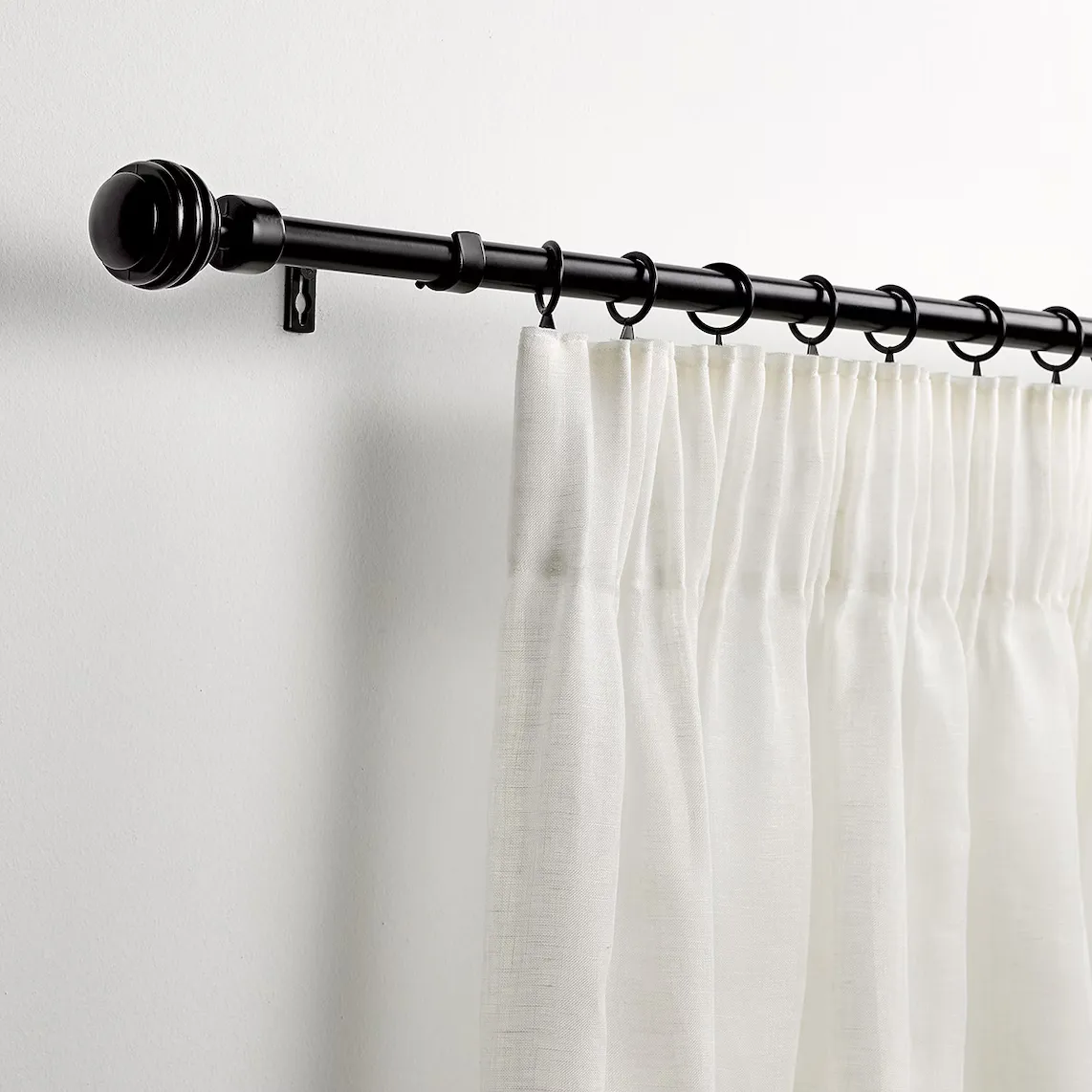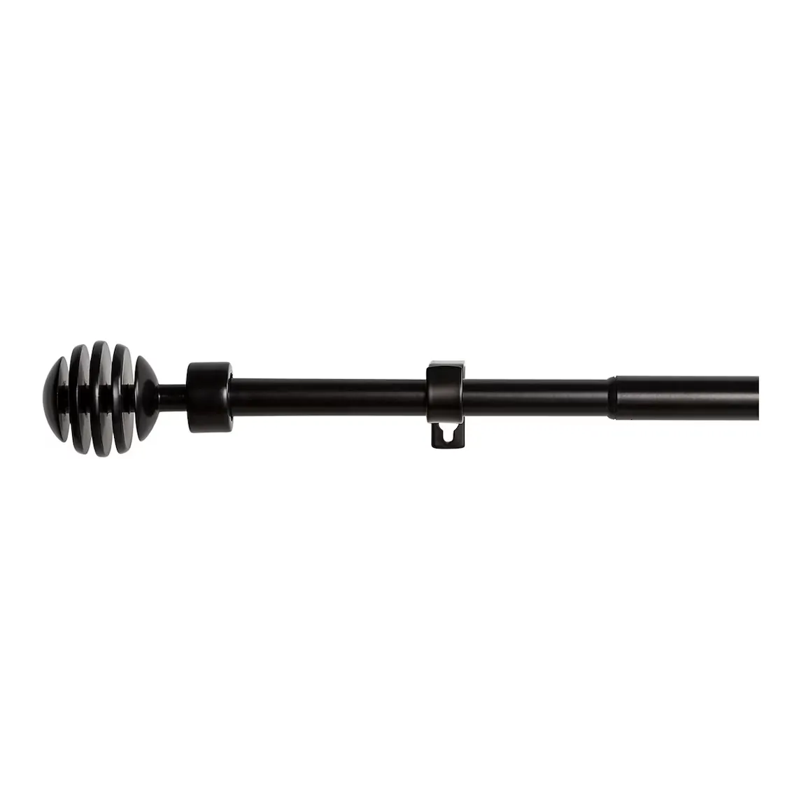 Выдвижная металлическая штанга с шаровидными накладками и рифлеными краями. Очень практичный и декоративный вариант повесить шторы.
