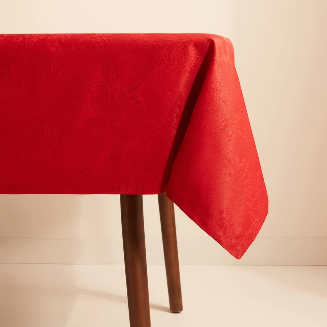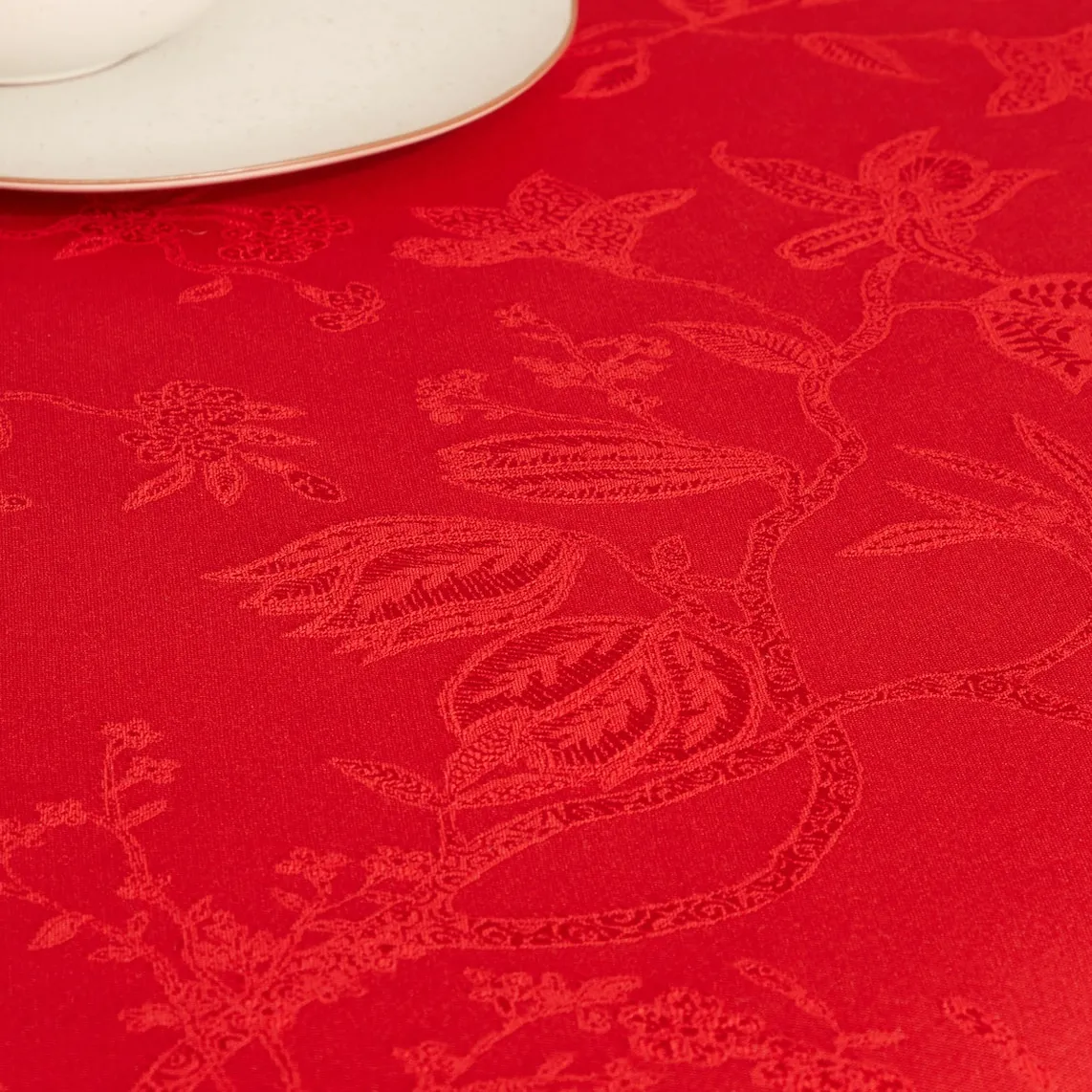 Скатерть с однотонным жаккардовым принтом.
