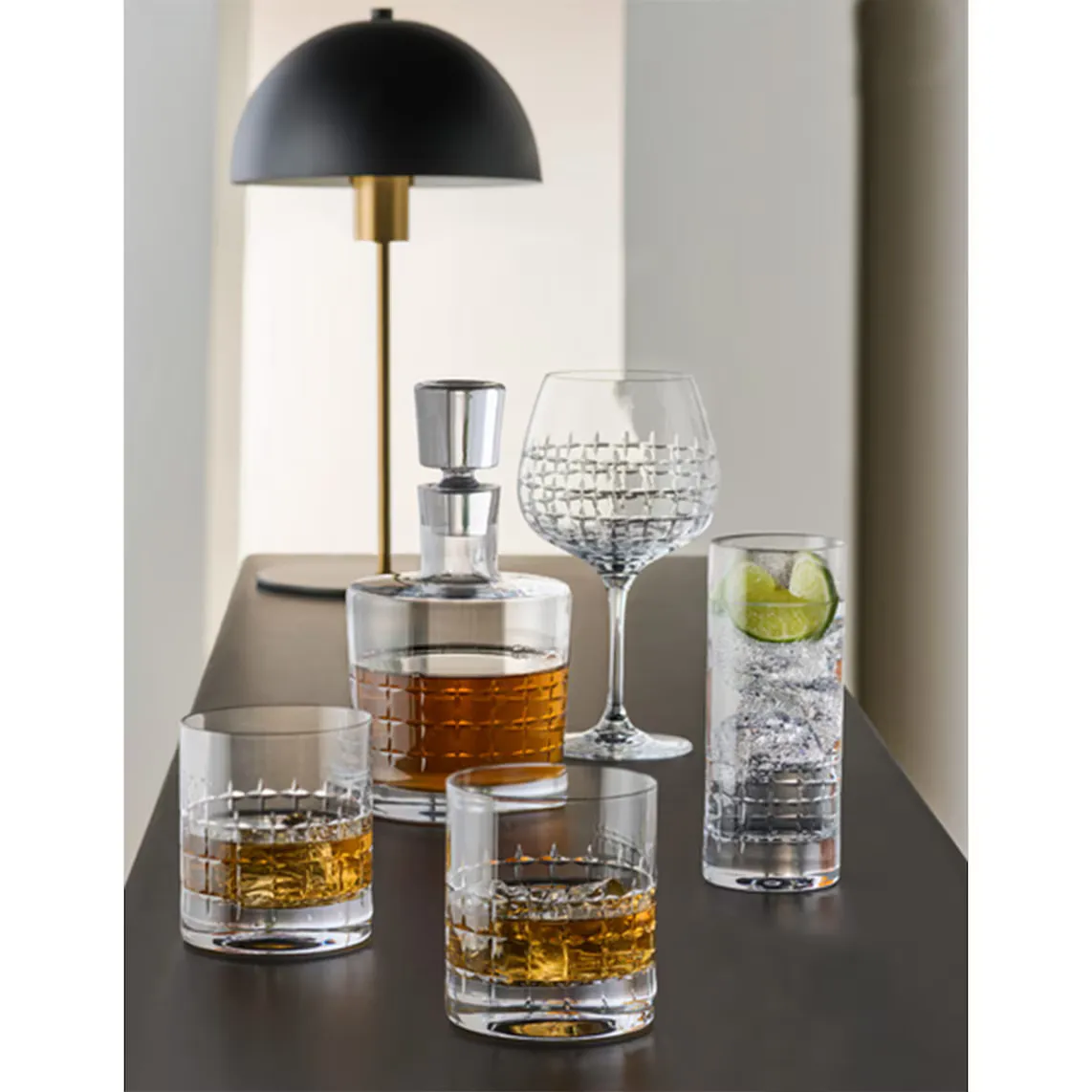 Высокий стакан из граненого хрусталя, благодаря своему широкому размеру идеально подходит для подачи виски или других ликеров со льдом. Он принадлежит к серии Leeds от El Corte Inglés и имеет емкость 37 кл.