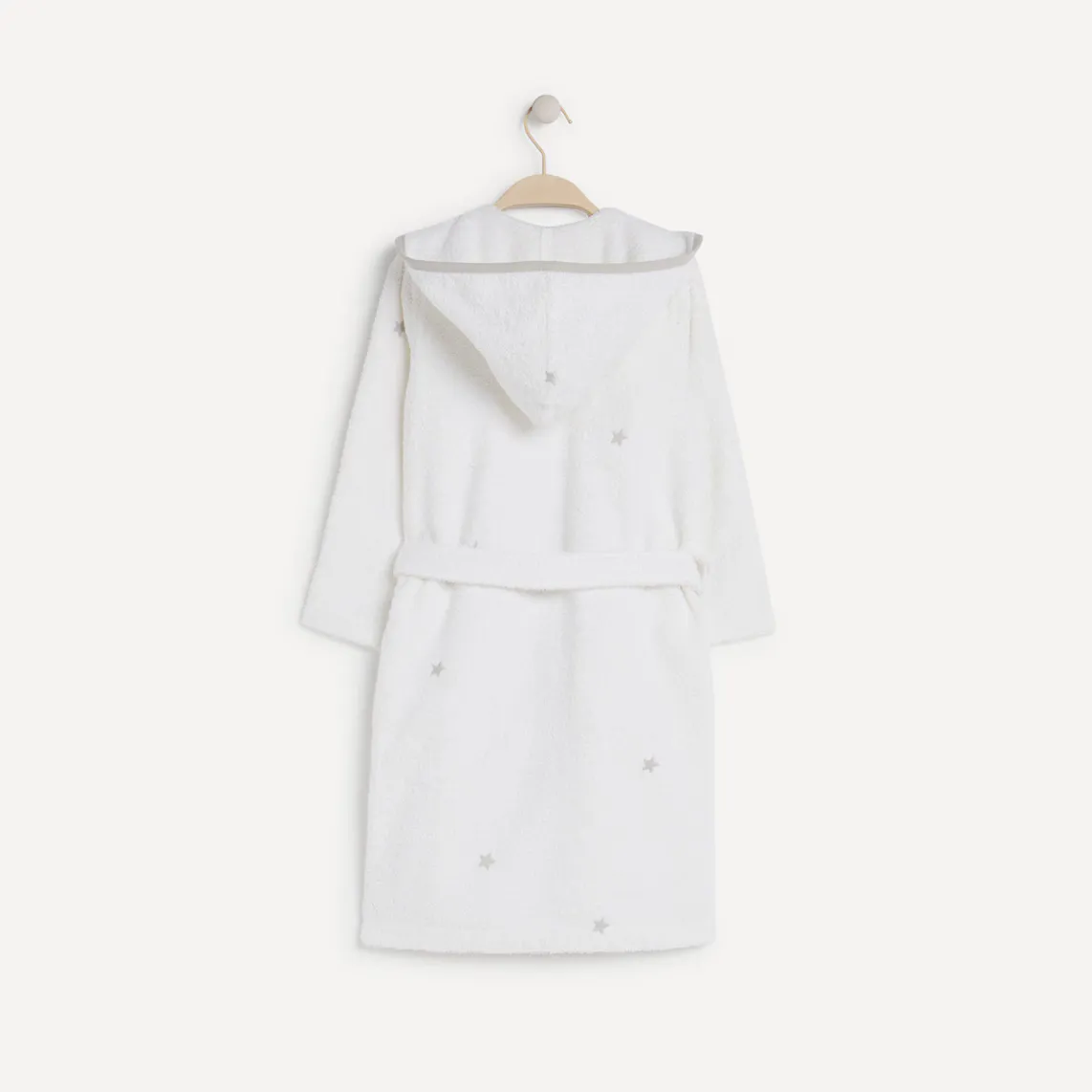Детский халат с капюшоном и вышивкой звезд.