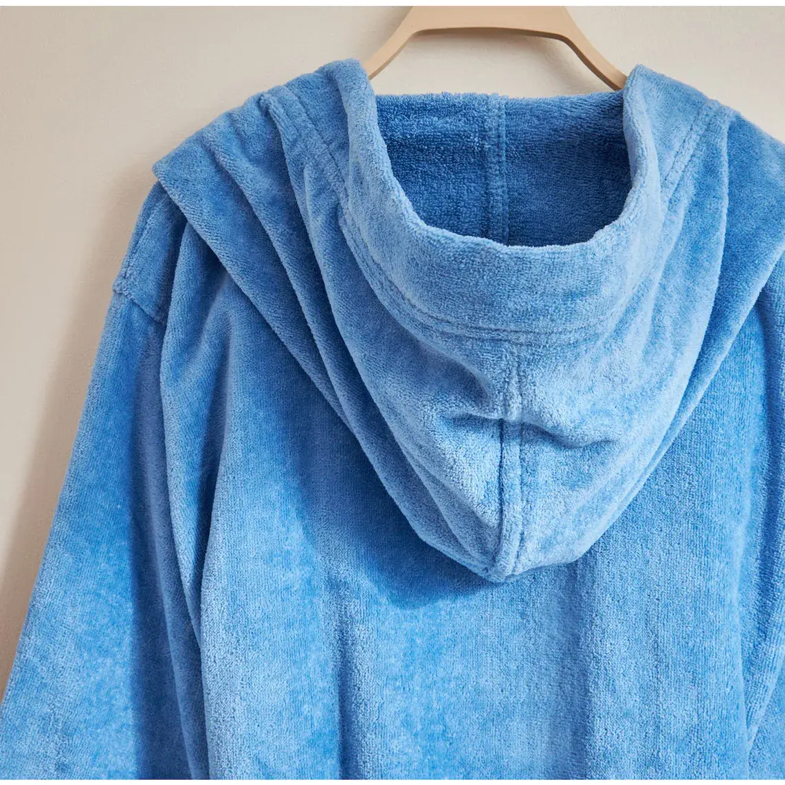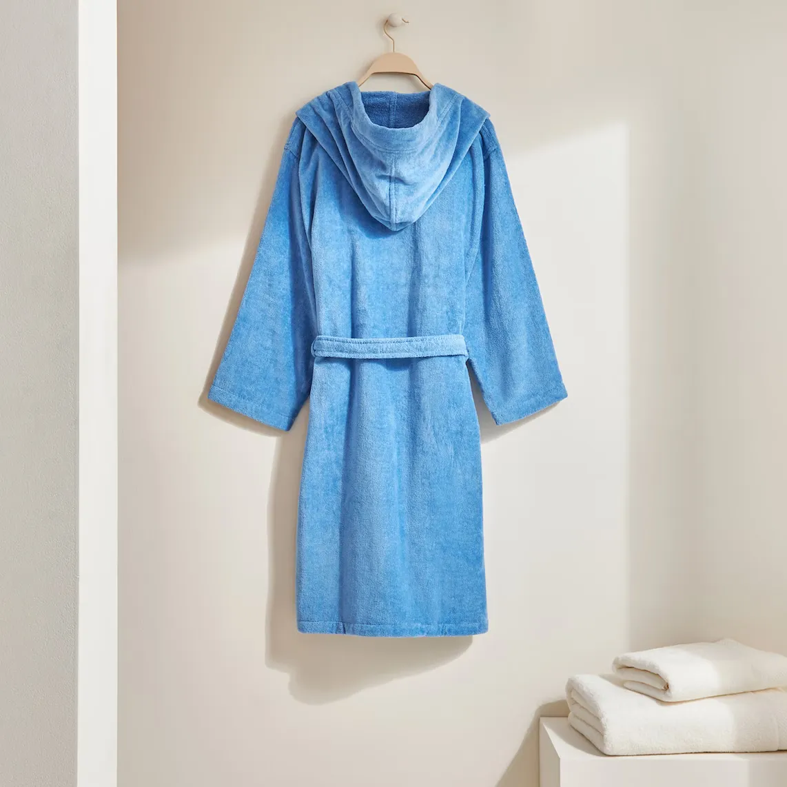 Халат с капюшоном и простым дизайном, доступен в различных цветах.