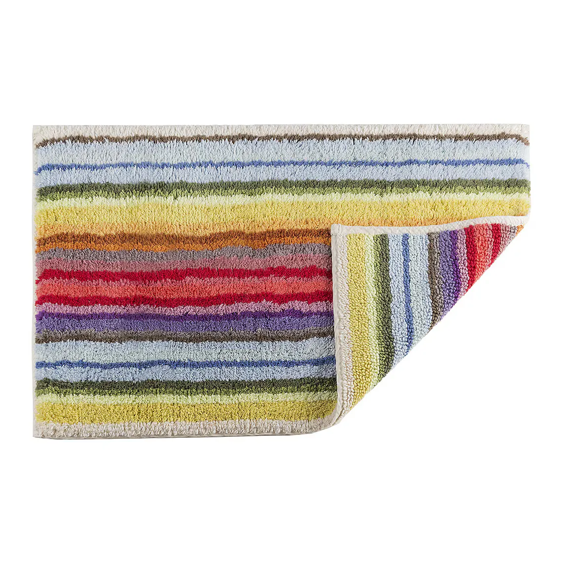 Коврик для ванной с разноцветным жаккардовым полосатым принтом.