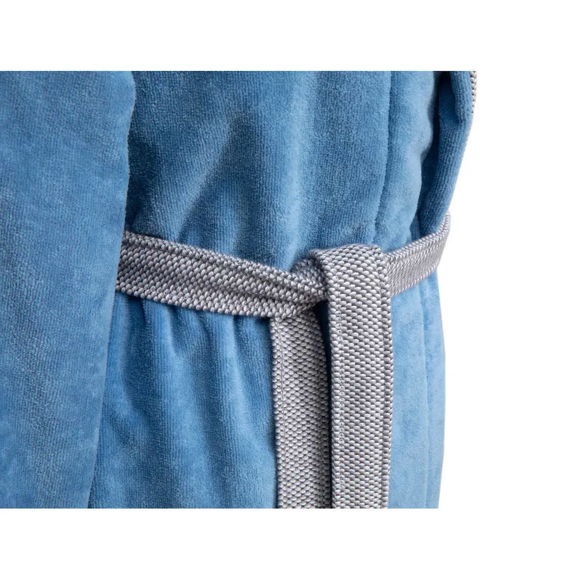 Простой халат с вышитым логотипом бренда на груди и велюровой отделкой. Текстурированный эффект на воротнике, поясе и манжетах.