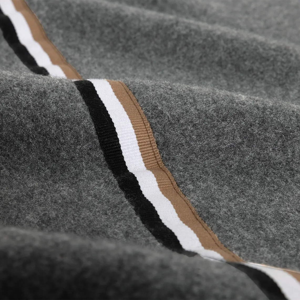 Декоративное одеяло однотонного дизайна с фирменной трехцветной полосой и отделкой по краю шириной 2 см.