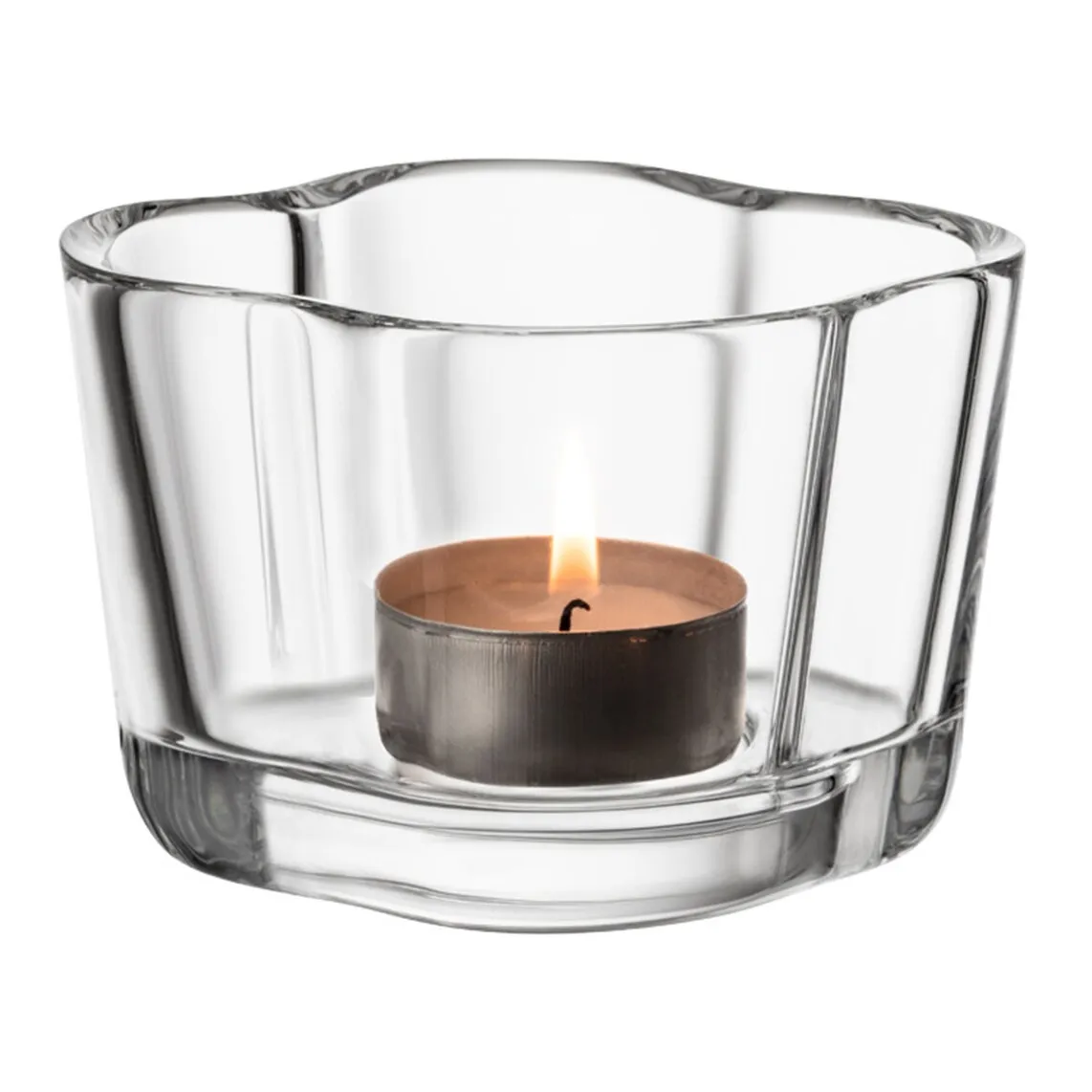Подсвечник в стиле Tealight изготовлен из прозрачного стекла и вдохновлен волнами Аалто, характерными для финского дизайна Алвара Аалто из Iitatta. Уникальный предмет, который придаст нотку эксклюзивности любой комнате, где вы его разместите.