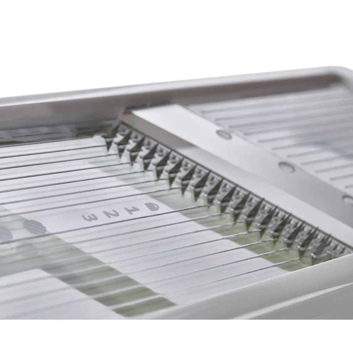 Настольная мандолина для безопасной и равномерной нарезки фруктов и овощей. Precision Food Grip защищает пальцы и имеет три способа удерживания: щипцы для небольших продуктов; центральная ручка для круглых пропилов; Плоская рукоятка для более длинных разрезов. Он имеет острые лезвия из нержавеющей стали и регулируется в трех вариантах толщины: один ломтик и два жульена.