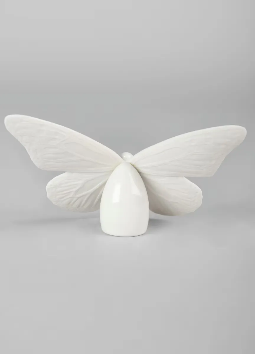 Эта нежная бабочка, выполненная из глянцевого и матового фарфора, декорирована белыми деталями с золотым блеском. Идеальный предмет для украшения, подарка любителю природы и животных или для коллекционирования. Ручная работа в