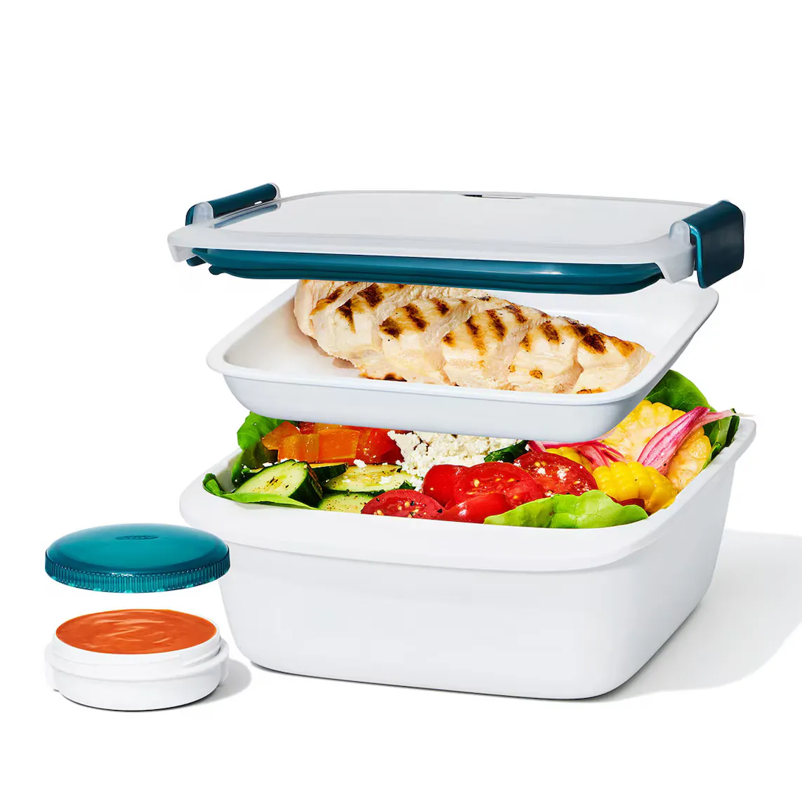 Герметичный контейнер Oxo идеально подходит для хранения салатов во время обеда. Изготовленный из пластика, не содержащего BPA, он оснащен поддоном, в котором ингредиенты будут храниться отдельно и, таким образом, всегда сохранять их свежими.