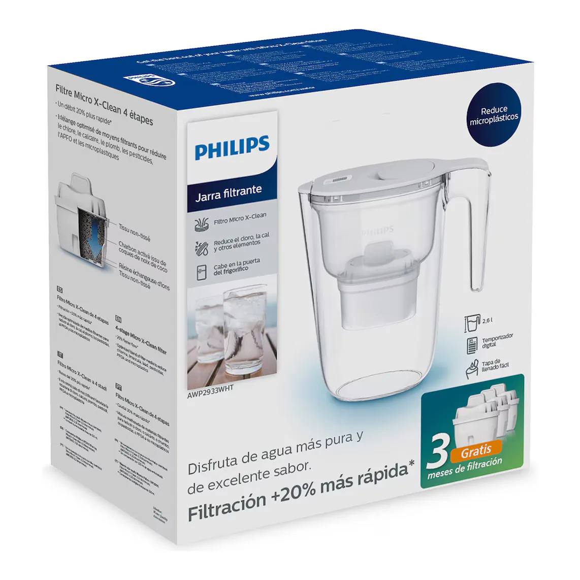 Кувшин для воды AWP2933WHT3 + 3 фильтра Micro Clean X Philips Water Solutions, белый