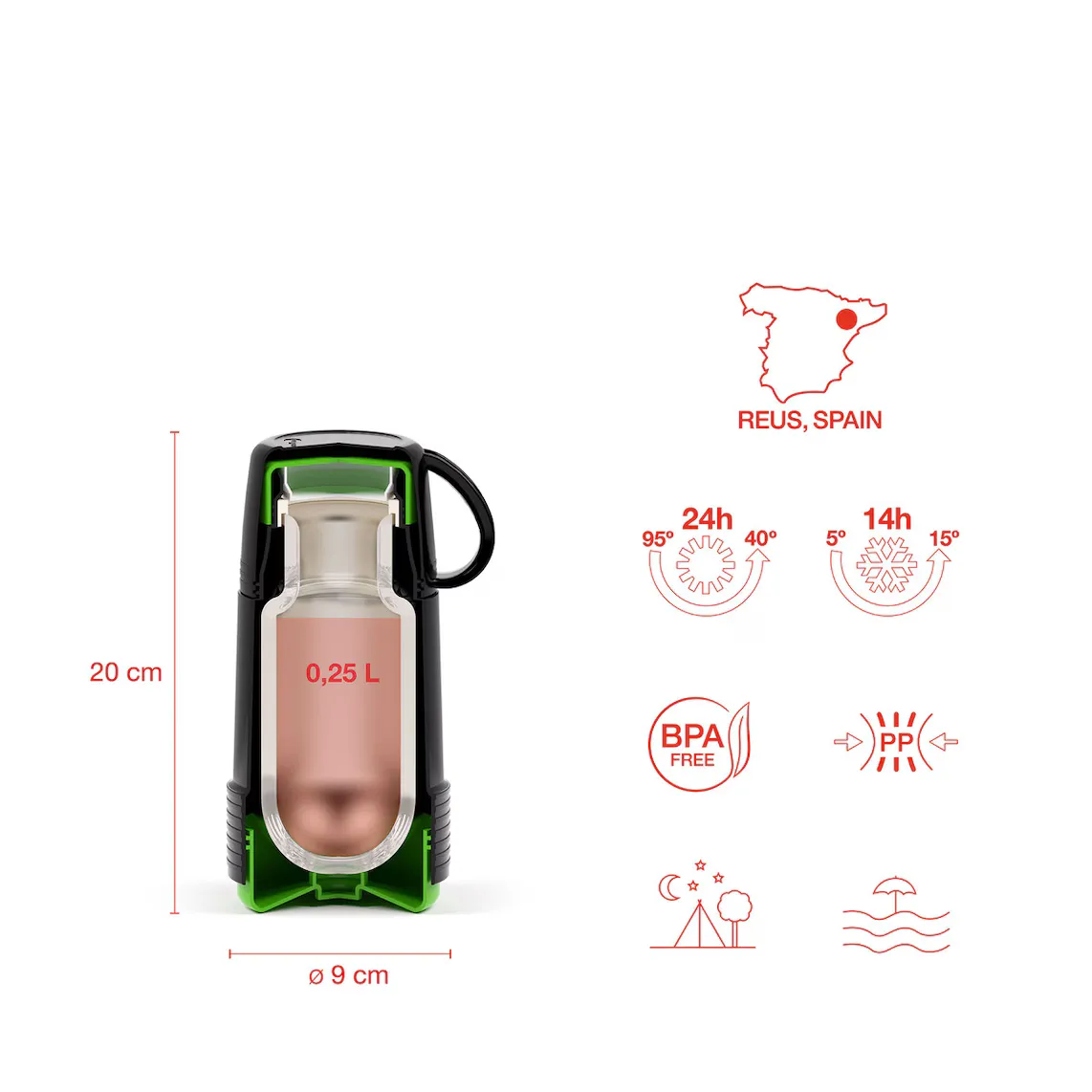 Идеальный термос, позволяющий брать напитки куда угодно и сохранять их при оптимальной температуре. Он изготовлен не менее чем на 60% из переработанного полипропилена и имеет внутреннюю стеклянную бутылку с двойными стенками и вакуумом, что позволяет хранить горячие напитки до 24 часов, а холодные напитки - до 14 часов.
