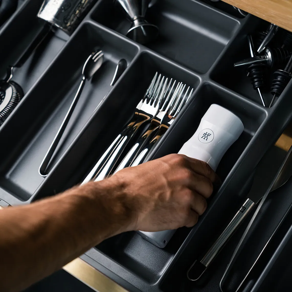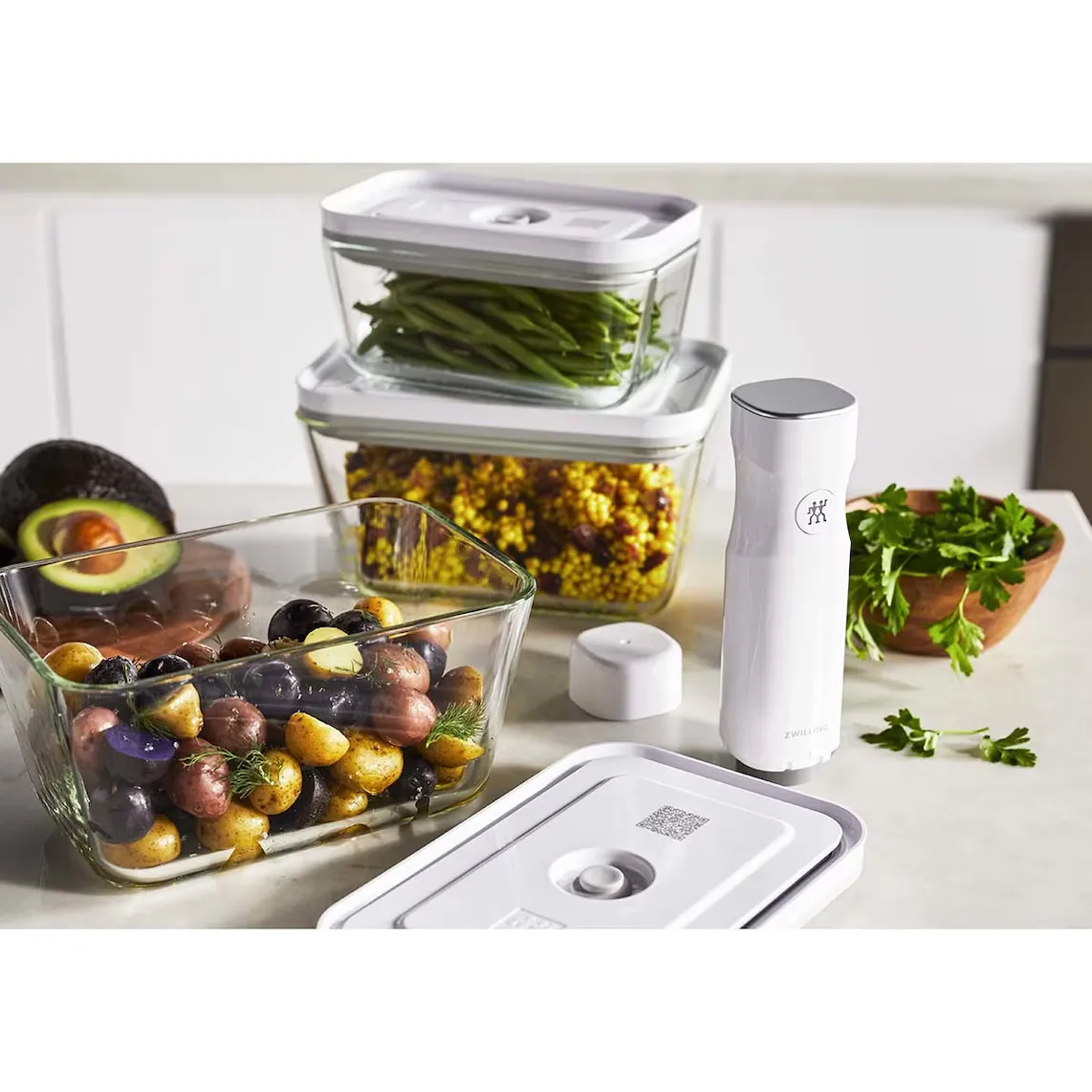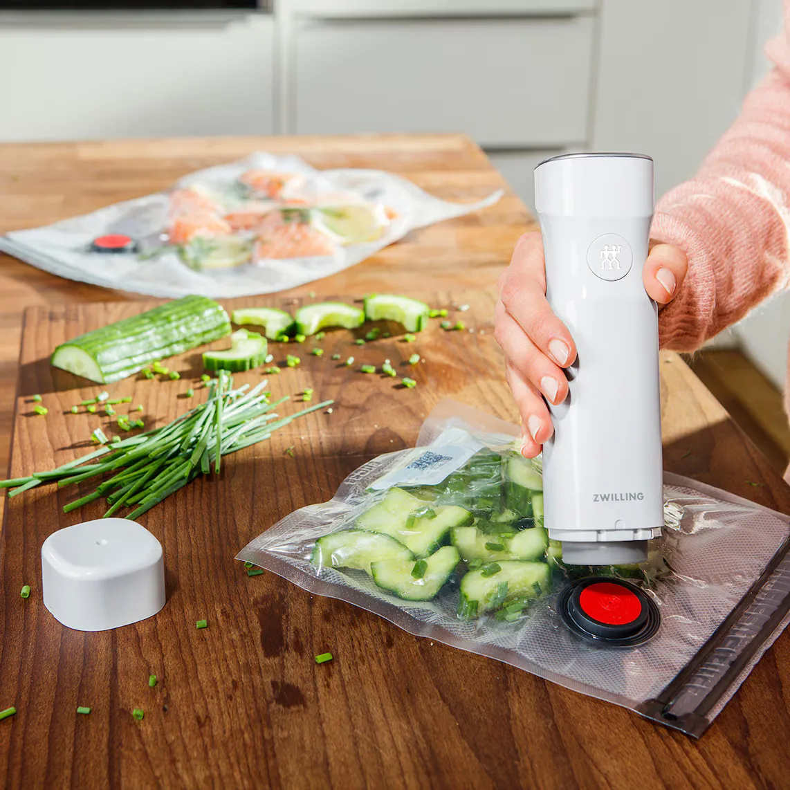 Вакуумный насос ZWILLING Fresh&Save - свежесть одним нажатием кнопки. Ваши продукты и блюда остаются свежими до пяти раз дольше, чем при обычном хранении без вакуума. Просто возьмите элегантный вакуумный насос от ZWILLING, и пусть он сделает всю работу.