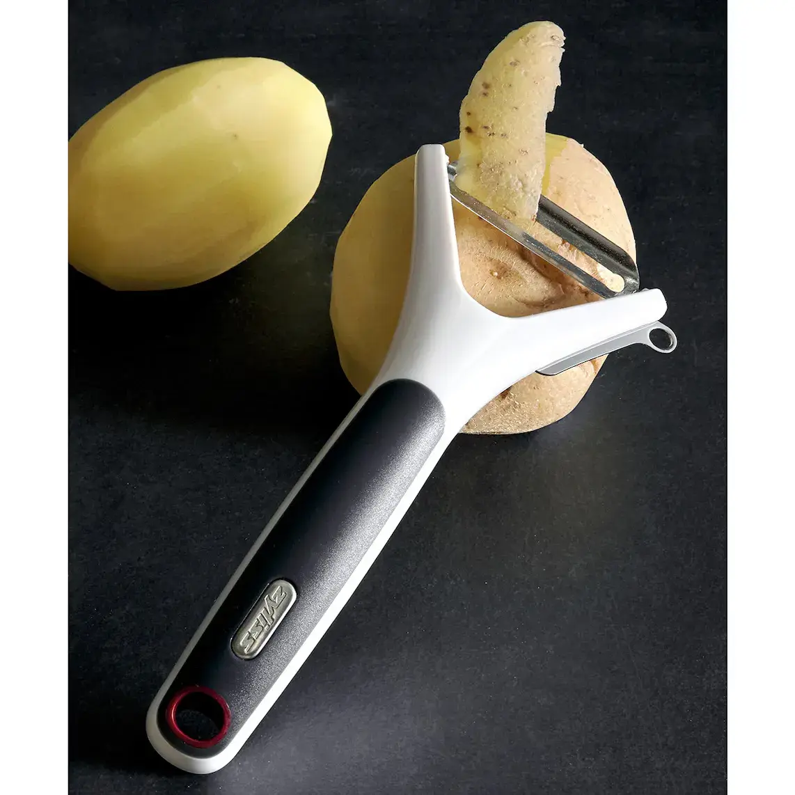 На кухне ищите посуду, которая облегчит любую работу, например, Y-образную овощечистку Zyliss, которая поможет вам легко чистить картофель, морковь и другие овощи с твердой кожурой.