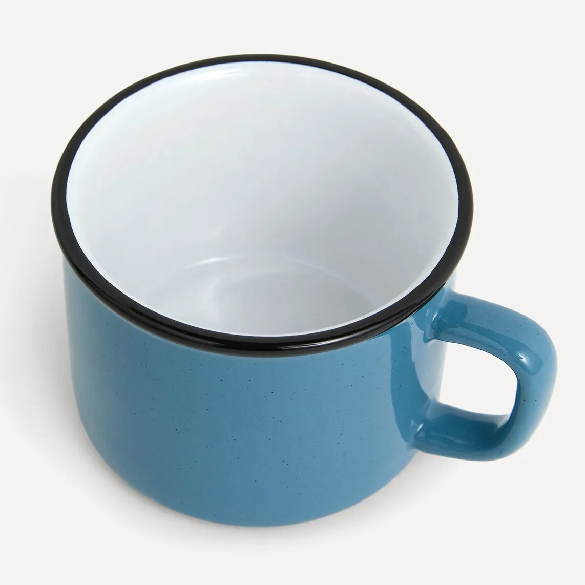 Кружка с ручкой емкостью 230 мл идеальна для подачи кофе. Он изготовлен из керамогранита с имитацией эмали, материала, который отличается высокой стойкостью и легко моется в посудомоечной машине.